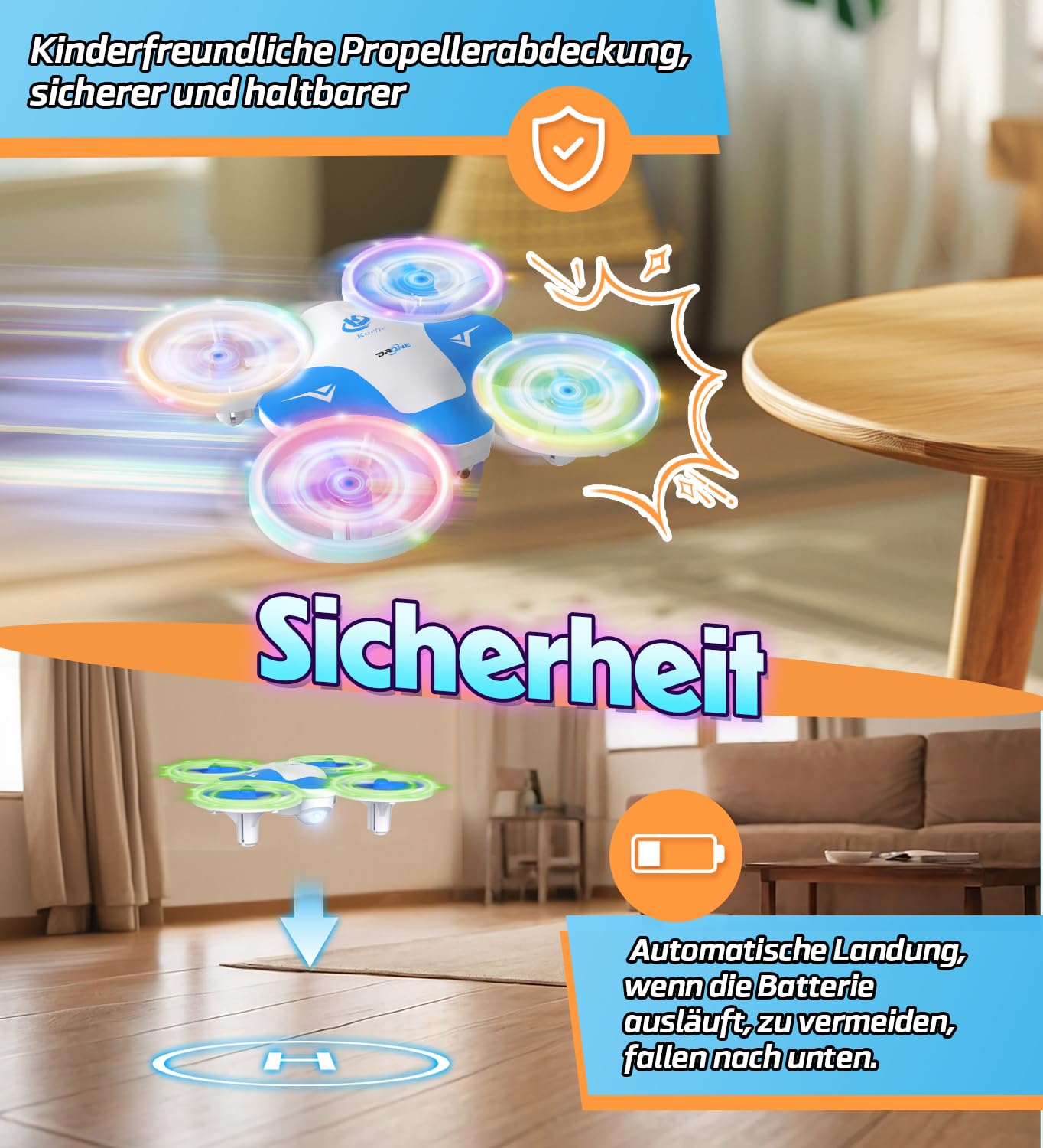 Korffe Mini Drohne Für Kinder Ab 6 Jahren - LED-Lichter 30min Flugzeit Indoor/Outdoor