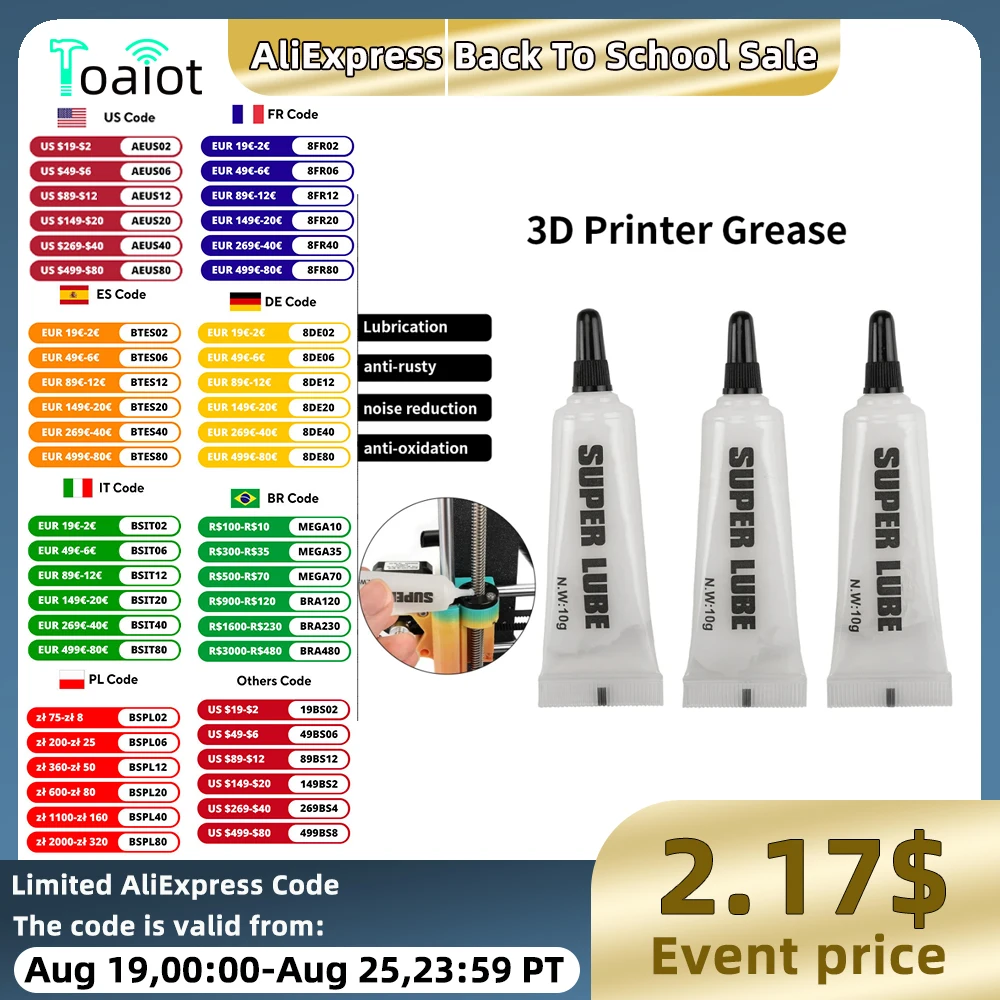 3D-Drucker-Besitzer aufgepasst! Dieses Spezialfett von YUYUEMI hält deine Drucker in Top-Form. Kompatibel mit Bambu Lab X1C, A1, A1 mini, P1S, P1P, K1/K1 Max und vielen anderen Modellen. Das weiße Silikonfett auf Mineralölbasis mit Lithiumseifenverdicker ist genau das Richtige für Linearführungen und Z-Achsen. Temperaturbeständig von -20 bis 120 Grad - da macht deinem Drucker keine Hitze was aus! Reduziert Reibungsgeräusche, verbessert die Laufruhe und verlängert die Lebensdauer deiner beweglichen Teile. Einfach auftragen und schon läuft alles wie geschmiert! Jede Tube hat 10g Inhalt - mit 2 Stück im Set hast du lange was davon. Ungiftig und geruchlos, also absolut unbedenklich. Einfach anwenden und sich über den leiser laufenden Drucker freuen!
