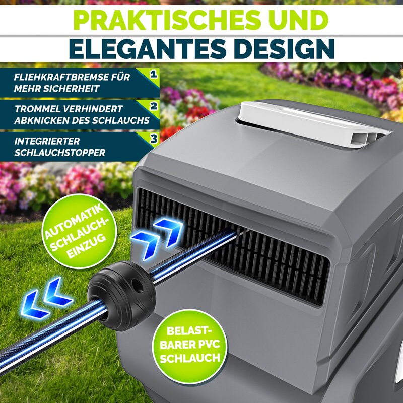 MASKO Druckluft-Schlauchaufroller 30m - Automatik Mit Wandhalterung & Schlauchbremse