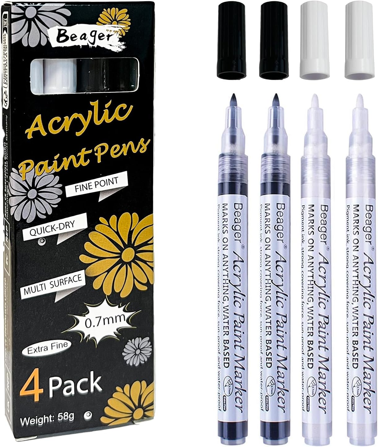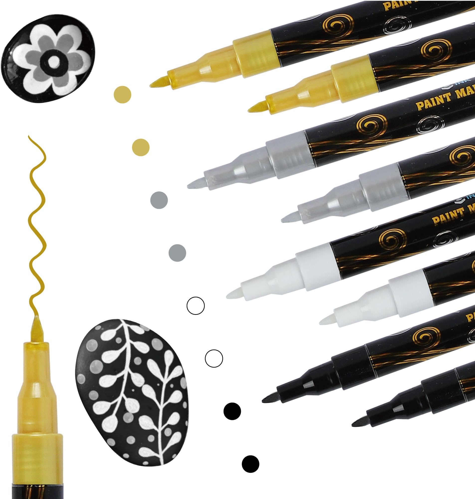 Tesquio Acrylstifte Schwarz Weiß 8er Set - Dual Tip Marker Für Steine, Holz & Leinwand