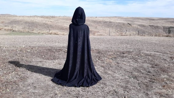 Schwarzer Hexenumhang Mit Kapuze - Durchscheinender Gothic Umhang Für Cosplay & Halloween