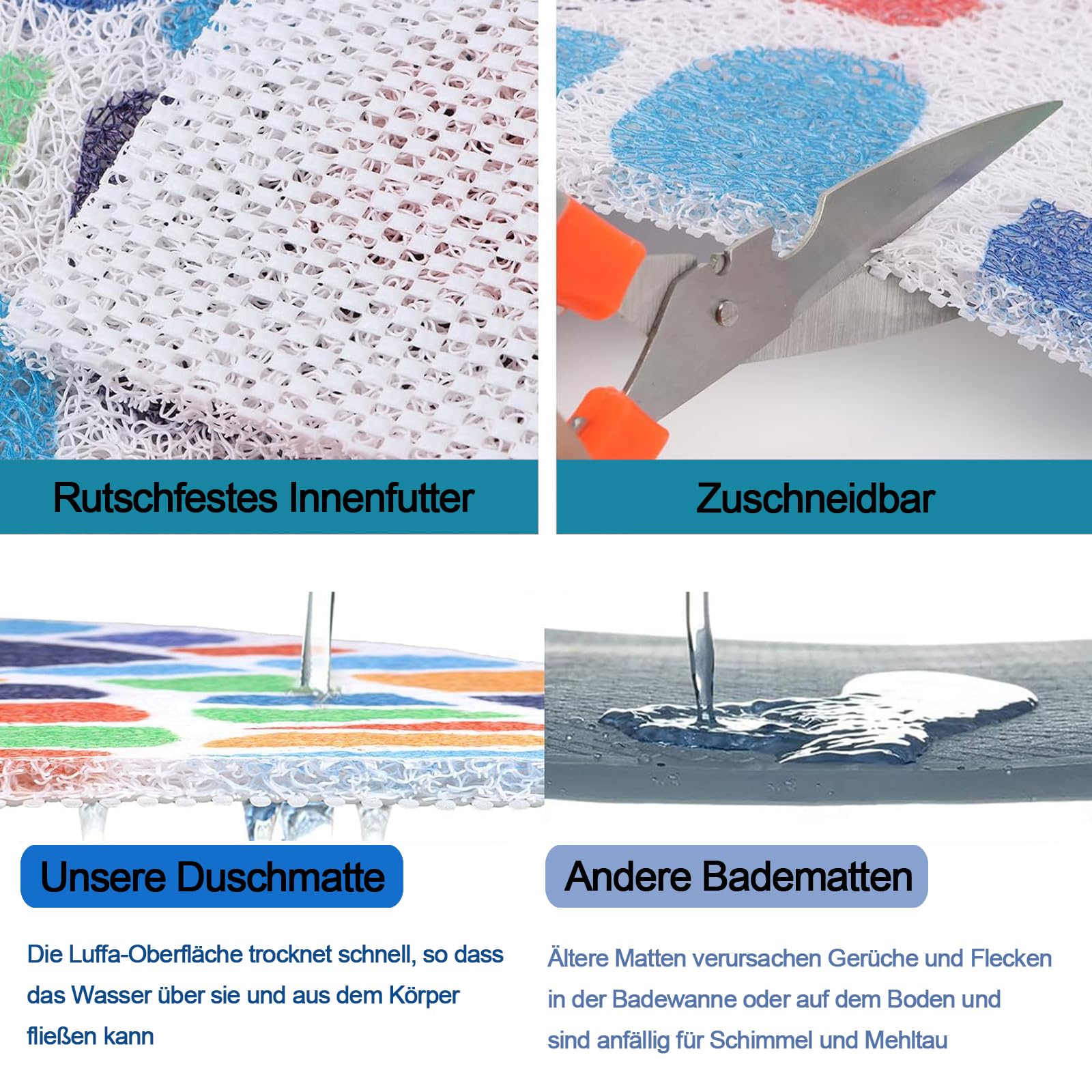 Eck Duschmatte 60x60cm - Rutschfest & Schimmelresistent Für Duschkabine
