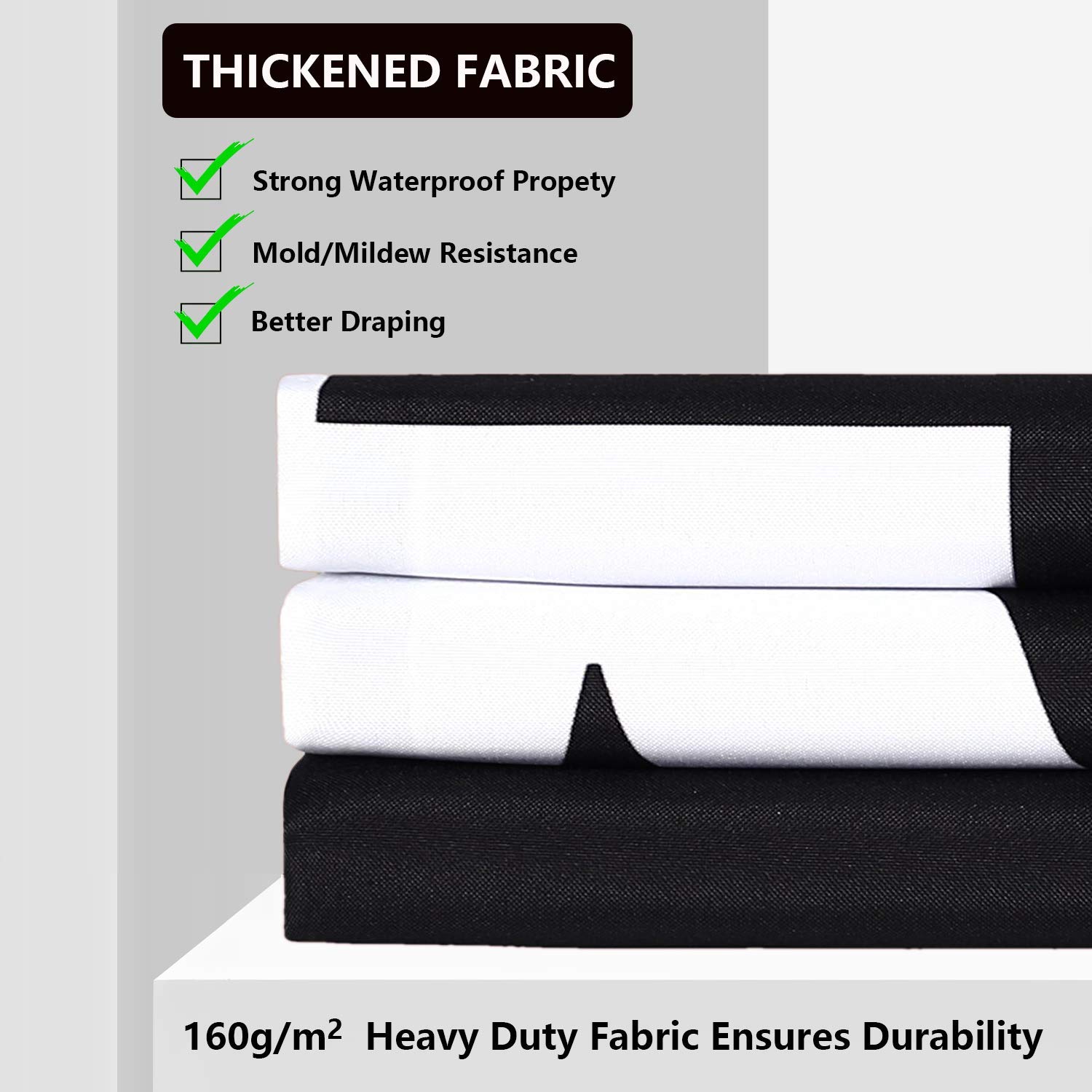 Hergestellt aus 100% wasserdichtem Polyester schützt der Vorhang zuverlässig vor Spritzwasser. Mit 152x184 cm passt er in die meisten Standard-Duschwannen und Badewannen.