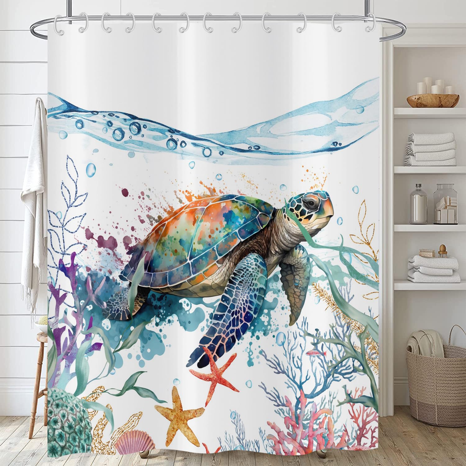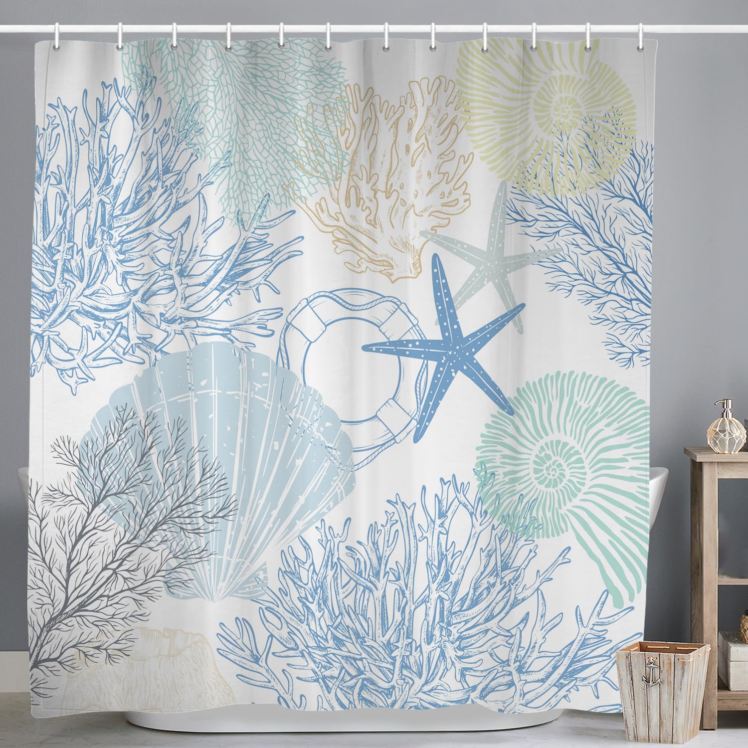 Dieser maritime Duschvorhang von Dazzlewall bringt Urlaubsfeeling ins Badezimmer! Mit 180x180cm Standardgröße passt er in fast jede Badewanne oder Duschkabine. Das blaue Meer-Design mit Muscheln, Seesternen und Seepferdchen sieht super frisch aus. Aus 100% Polyestergewebe - wasserdicht, schimmelfrei und maschinenwaschbar. Mit 12 Metallösen und inklusive 12 Kunststoffhaken für einfache Montage an geraden oder gebogenen Vorhangstangen. HD-Druck sorgt für lebendige, langlebige Farben. Geruchlos, leicht zu reinigen und schützt deine Privatsphäre. Perfekt als Geschenk für Freunde oder Familie zu Geburtstagen oder Einweihungspartys. Einfach in kaltem Wasser waschen, bei niedriger Temperatur trocknen und bei niedriger Temperatur bügeln - so bleibt's lange schön!