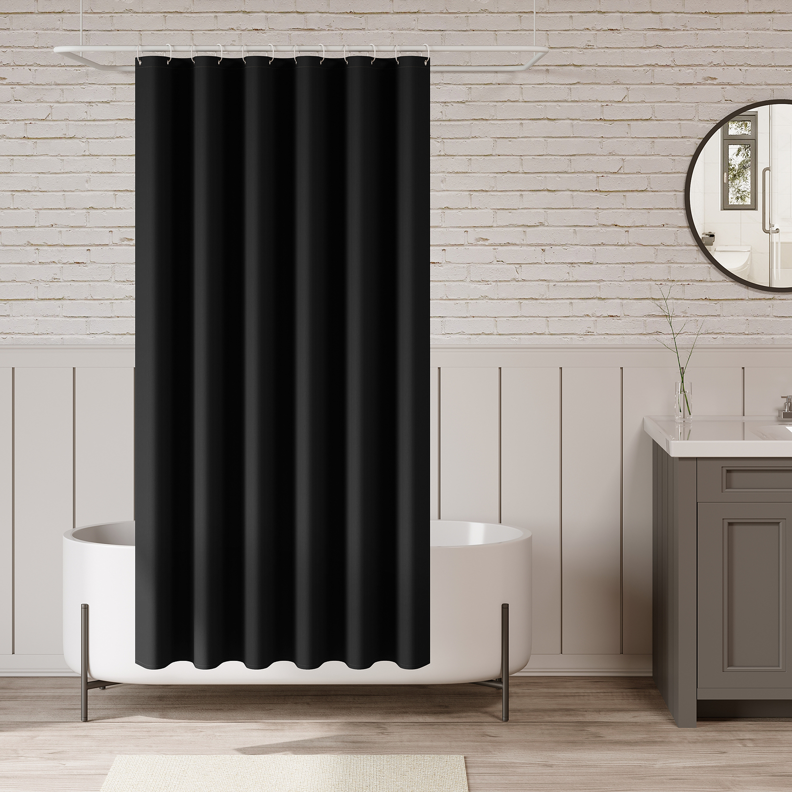 Bring dein Badezimmer mit diesem stylischen schwarzen Duschvorhang auf das nächste Level! Mit dem coolen Pferd-Design im modernen 3D-Druck wird jede Dusche zum Erlebnis. Der Vorhang ist aus hochwertigem Polyester gefertigt und mit einer wasserdichten Nano-Beschichtung versehen - da bleibt garantiert alles trocken! Der beschwerte Saum mit Bleidraht sorgt dafür, dass der Vorhang nicht am Körper klebt und ordentlich hängt. Mit den 12 Metallösen und den mitgelieferten Kunststoffhaken ist die Montage super einfach - einfach auf die Duschstange hängen und fertig! Nach dem Duschen trocknet der Vorhang schnell und verhindert so unangenehme Gerüche. Und wenn's mal Zeit für eine Reinigung wird: Einfach in die Waschmaschine stecken oder von Hand waschen - danach sieht er wieder aus wie neu. Perfekt für jedes Badezimmer, ob zuhause, im Hotel oder Ferienhaus!
