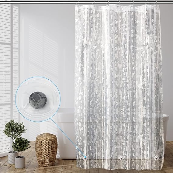 Modernes Design meets Funktionalität! Dieser transparente 3D-Duschvorhang (180x180cm) aus 100% EVA-Material ist komplett wasserfest und schimmelresistent. Die 13mm Stärke und 3 Magnete an der Unterseite sorgen für Stabilität. Mit 12 rostfreien Metallösen für einfache Aufhängung. Antibakteriell und pflegeleicht - einfach mit feuchtem Tuch abwischen. Schützt deine Privatsphäre und sieht dabei stylisch aus. Perfekt für jedes Badezimmer!