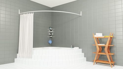 Sikaiqi L-förmige Duschvorhangstange - Eck-Duschstange 70x160cm Gold Mit 12 Haken Für Große Badezimmer