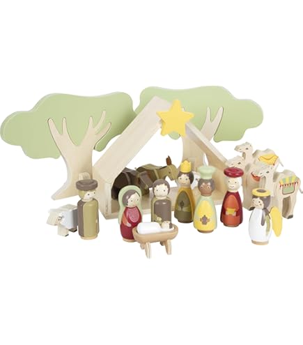 Oh, diese Little Dutch Holz-Krippe ist ja mal richtig süß für die Weihnachtszeit! Im stabilen Kartonkoffer findest du alle Figuren aus 100% Holz - Maria, Josef, das Jesuskind und mehr. Kinder können damit die Weihnachtsgeschichte nachspielen oder die Krippe als Dekoration unter den Tannenbaum stellen. Mit den Maßen 24,5 x 20,2 x 9,8 cm ist sie perfekt für kleine Hände geeignet. Ab 18 Monaten können die Kleinen damit schon spielen. Nach dem Spielen wird einfach alles wieder in den Koffer geräumt - super praktisch für unterwegs oder zur Aufbewahrung. So lernen Kinder spielerisch die Weihnachtsgeschichte kennen und haben gleichzeitig ein schönes Spielzeug. Perfekt als Geschenk zur Adventszeit oder um die Vorfreude auf Weihnachten zu steigern!