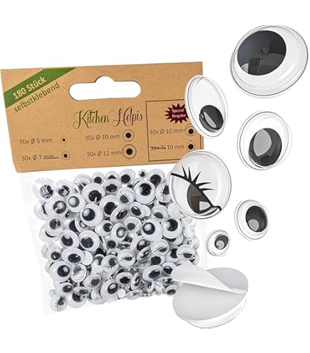 Bastelfans aufgepasst! Diese 100 Wackelaugen mit 28 mm Durchmesser bringen Leben in deine Kreationen. Perfekt für Puppen, Plüschtiere, selbstgemachte Monster oder jede andere Bastelidee. Einfach mit Kleber aufkleben und schon wackeln die Augen lustig hin und her. Macht jedes Projekt sofort professioneller. Aber Achtung: Nicht für Kinder unter 5 Jahren geeignet wegen Verschluckungsgefahr. In verschiedenen Größen erhältlich - für jede Bastelidee die passenden Augen. Ob für Schulprojekte, Kindergeburtstage oder kreative Hobby-Arbeiten - mit diesen Wackelaugen wird's garantiert lustig. Hol dir das Komplett-Set und hab immer genug Augen für deine nächsten Bastel-Marathons parat!