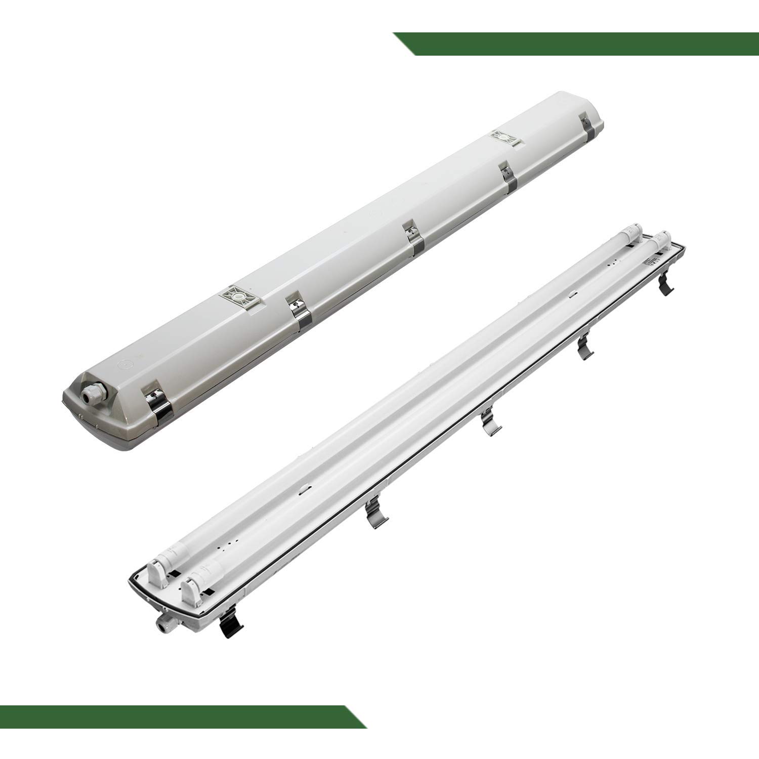 Montieren ist super einfach mit den praktischen Deckenclips aus rostfreiem INOX-Stahl. Du kannst die Leuchte sowohl an der Decke als auch an der Wand befestigen. Und wenn du mehrere Leuchten brauchst: Einfach miteinander verbinden! Das robuste Polycarbonat-Gehäuse hält auch mal was aus - mit IK08 Schlagfestigkeit ist die Leuchte quasi unzerstörbar. Mit 95 lm/W extrem energieeffizient und dazu noch D-konform für feuergefährdete Bereiche. Einfach klasse!
