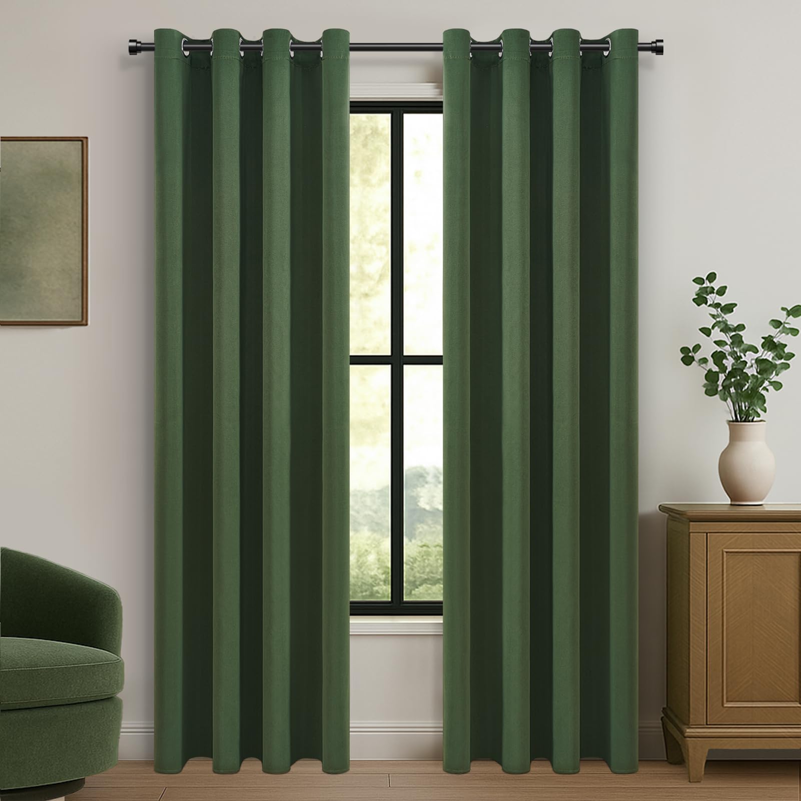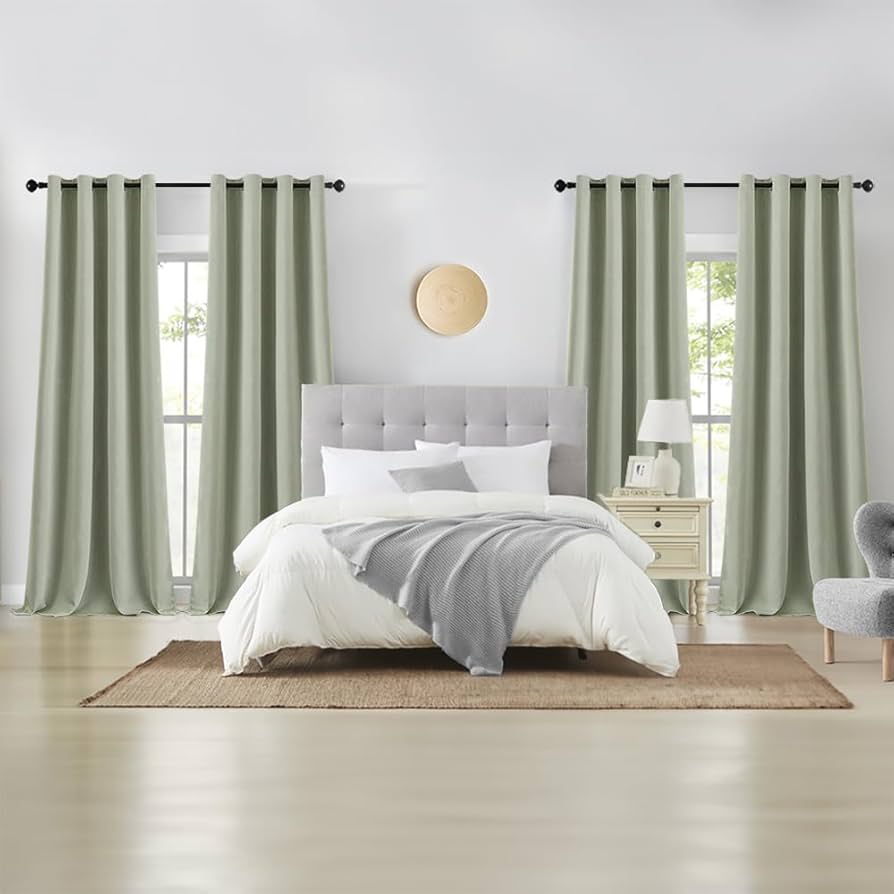 EMEMA Vorhänge Salbei Grün 160x140cm - Blickdichte Verdunklungsvorhänge 2er Set