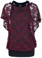 Black Premium By EMP Damen T-Shirt Bordeaux - Weites Fit Rundhals Shirt Aus Baumwolle