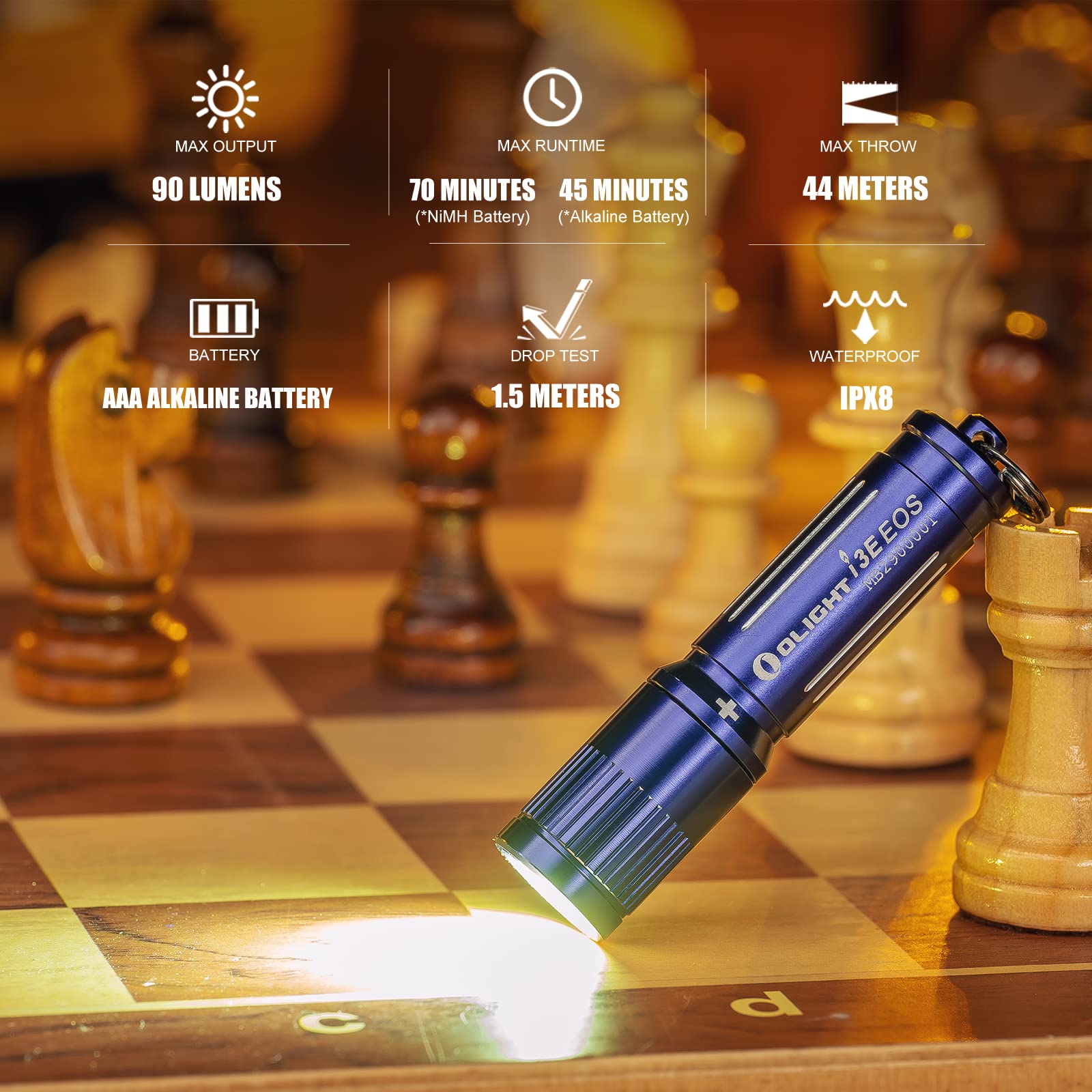 OLIGHT I3E EOS Mini Taschenlampe | 90 Lumen Schlüsselanhänger LED Lampe | IPX8 Wasserdicht