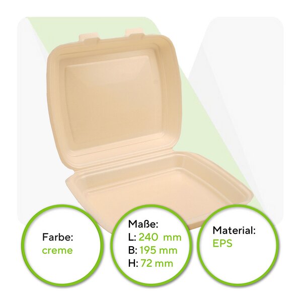 Perfekt für Gastronomie, Catering oder Events - diese 200 goldfarbenen Menüboxen von Papstar sind einfach praktisch! Aus EPS-Material gefertigt, sind sie nicht nur stabil, sondern auch leicht und isolierend. Mit den Maßen 7,5x24,3x20,8 cm bieten sie genug Platz für verschiedene Speisen - ob kalte Vorspeisen, Hauptgerichte oder Desserts. Die goldene Farbe sieht richtig edel aus und macht jedes Gericht zum Highlight. Da die Boxen ungeteilt sind, kannst du sie flexibel für verschiedene Speisen verwenden. Geliefert werden sie in 2 praktischen Packungen à 100 Stück - ideal also auch für größere Veranstaltungen. EPS ist bekannt für seine gute Isolierwirkung, sodass warme Speisen warm und kalte Speisen kalt bleiben. Einfach ein vielseitiges Verpackungssystem, das in jeder Küche gut zu gebrauchen ist. Ob für den Imbiss um die Ecke, die Schulmensa oder das Firmenevent - mit diesen Boxen bist du bestens ausgestattet!