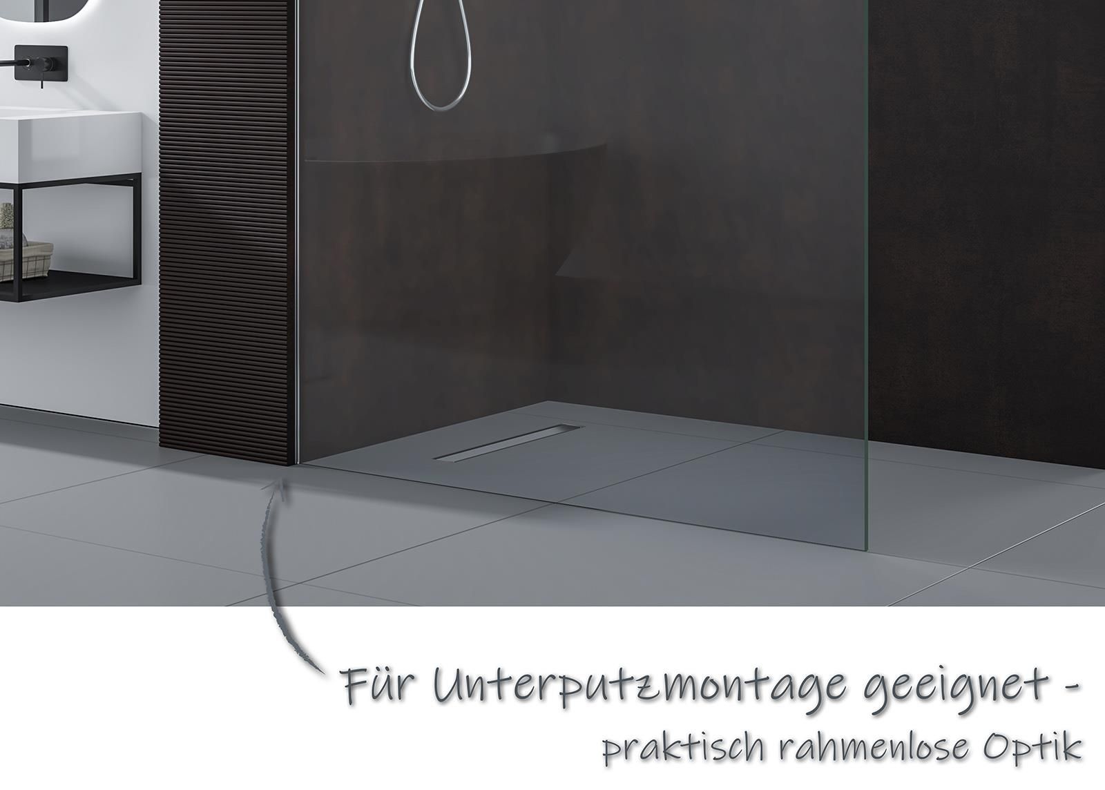 Wow, was für ein Blickfang! Diese Bernstein Walk-In Dusche EX102 macht jedes Bad zum Luxus-Spa. Mit 100x200 cm Maßen und 10 mm starkem grauem ESG-Sicherheitsglas wirkt sie richtig edel. Die Nano-Beschichtung ist genial - Wasser und Seifenreste perlen einfach ab, putzen war noch nie so leicht! Die schwarzen Edelstahl-Profile sehen ultra-modern aus und sind sowohl Unterputz als auch Aufputz montierbar. Barrierefrei und bodeneben einbaubar, aber auch mit Duschwanne möglich. Die ultradünnen Wandprofile sorgen für einen puristischen Look. Ab 130 cm Glasbreite empfiehlt sich eine Stabilisationsstange - aber die bekommst du natürlich auch bei uns. Einfach traumhaft, wie viel Eleganz und Weite diese Duschabtrennung ins Badezimmer bringt. Für alle, die das besondere Extra lieben!