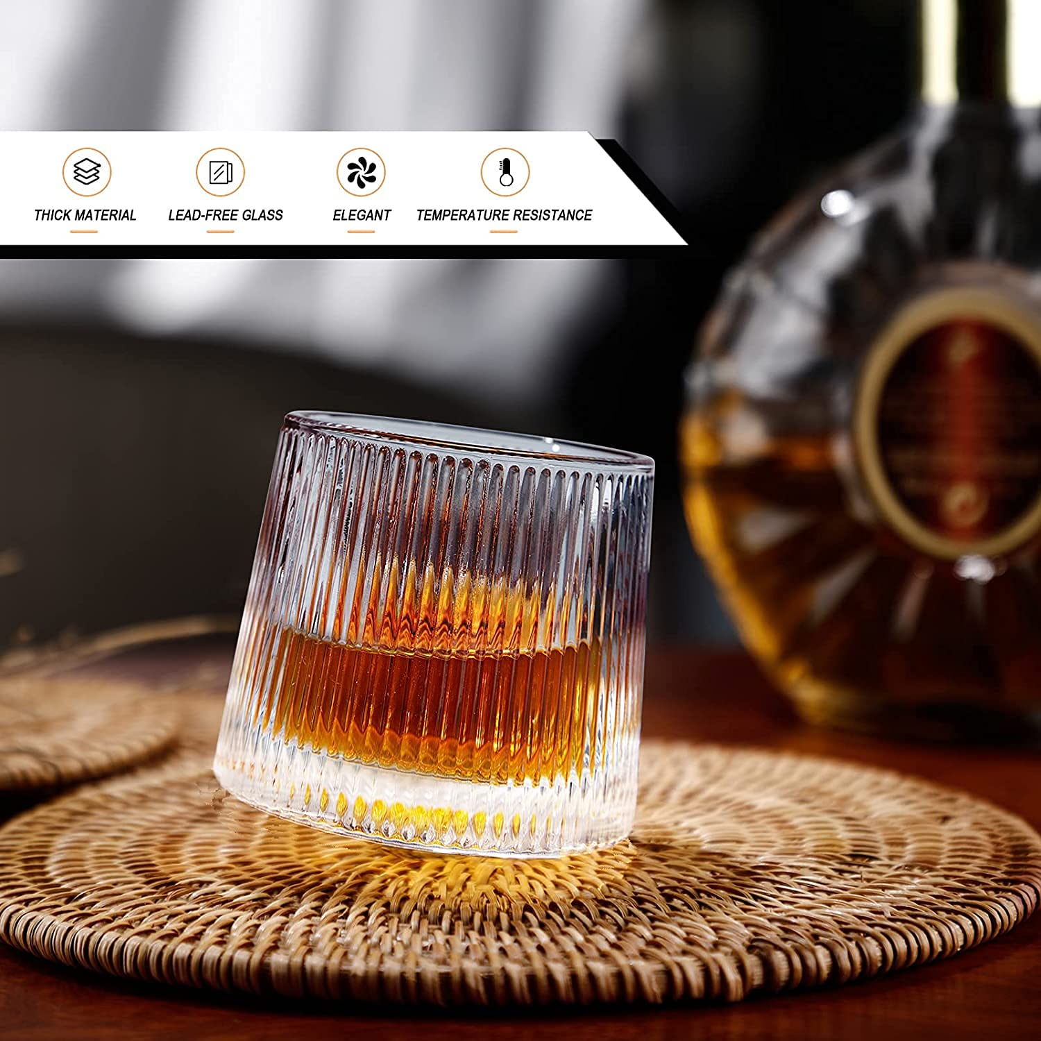 Whiskygenuss mit Wow-Effekt! Diese einzigartigen drehbaren Whiskygläser bringen Spaß und Eleganz in deine Home-Bar. Mit halbkugelförmigem Boden, der sich selbst rocken kann, und perfektem 30°-Winkel für optimales Aroma. Das schwere, dicke Bodendesign sorgt für Stabilität beim Drehen - kippt nicht um! Aus hochwertigem Kristallglas mit Diamantkörnung, die unter Licht wunderschön glänzt. Perfekt für Scotch, Bourbon, Rum oder Cocktails. Spülmaschinenfest für einfache Reinigung. Im 6er-Set ideal für Partys oder als Geschenk für Whisky-Liebhaber. Bring deine Gäste zum Staunen und genieße deine Drinks in stylischen Gläsern, die garantiert Gesprächsthema werden!