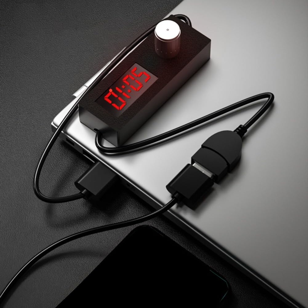 Vergiss das Ausschalten! Dieser smarte Timer erledigt es für dich. ⏰\n\nFunktionen:\n• 24-Stunden Programmierung - bis zu 24h Vorausplanung\n• 5-Minuten Intervalle - präzise Zeiteinstellung\n• USB-Anschluss - für 5V Geräte perfekt\n• Automatische Abschaltung - Gerät geht von alleine aus\n\nEinfache Bedienung:\n1. Knopf drücken & drehen für Modus-Wechsel\n2. Stunden in 1h-Schritten einstellen\n3. Minuten in 5-Minuten-Schritten justieren\n4. Timer läuft - du entspannst dich!\n\nTechnische Daten:\n• Maße: 7x2,7x1,6cm - handlich & kompakt\n• Material: Langlebiger PP-Kunststoff\n• Spannung: 5V über USB\n• Display: Digital & gut ablesbar\n\nPerfekt für:\n💡 Nachttisch-Lampen - automatisches Ausschalten\n🔌 Ladegeräte - verhindert Überladung\n🎄 Beleuchtung - festliche Stimmung ohne Stromverschwendung\n\nKlein, aber oho! Dieser Timer sorgt für mehr Komfort und spart nebenbei noch Energie.