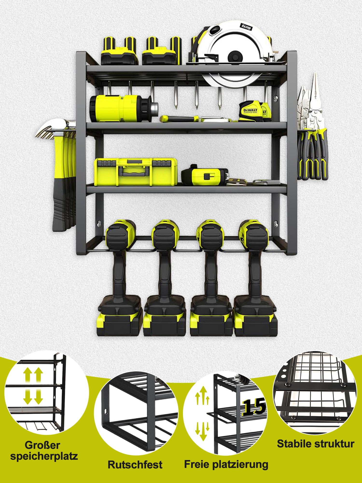 Jellybibo Werkzeug Organizer 4 Ebenen - Metall Wandhalterung Für 8 Akkuschrauber