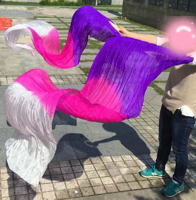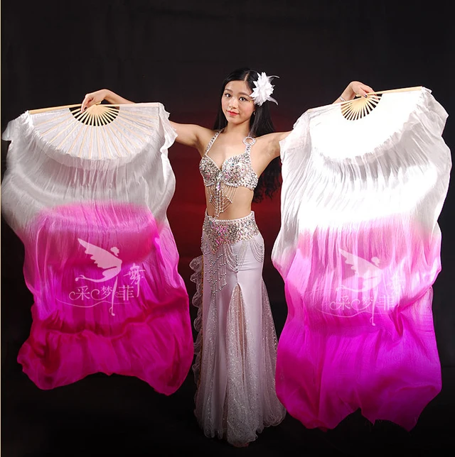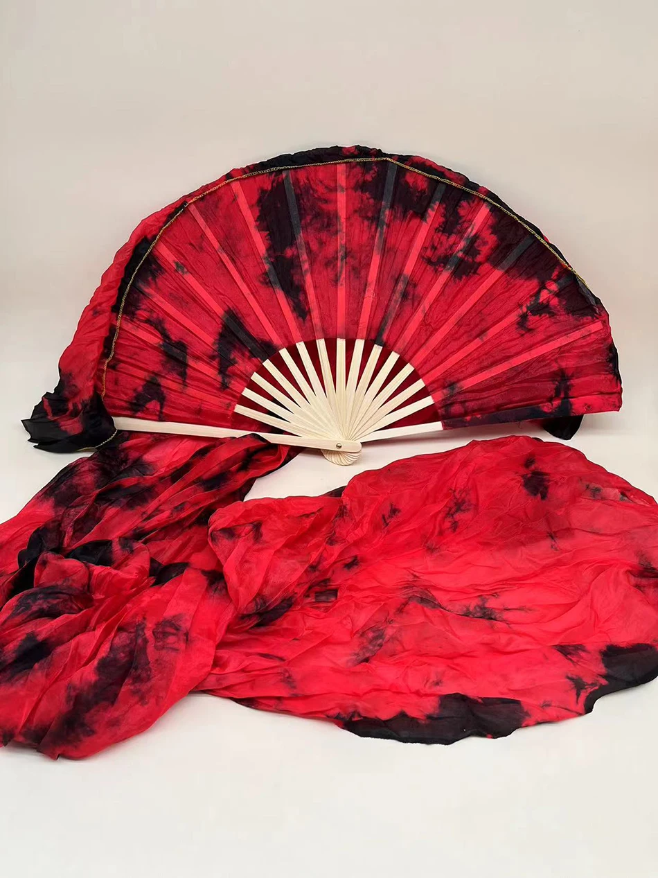 Echte Seiden Bauchtanz Fächer - 180cm Handgefärbte Tanzschleier Mit Bambusrahmen