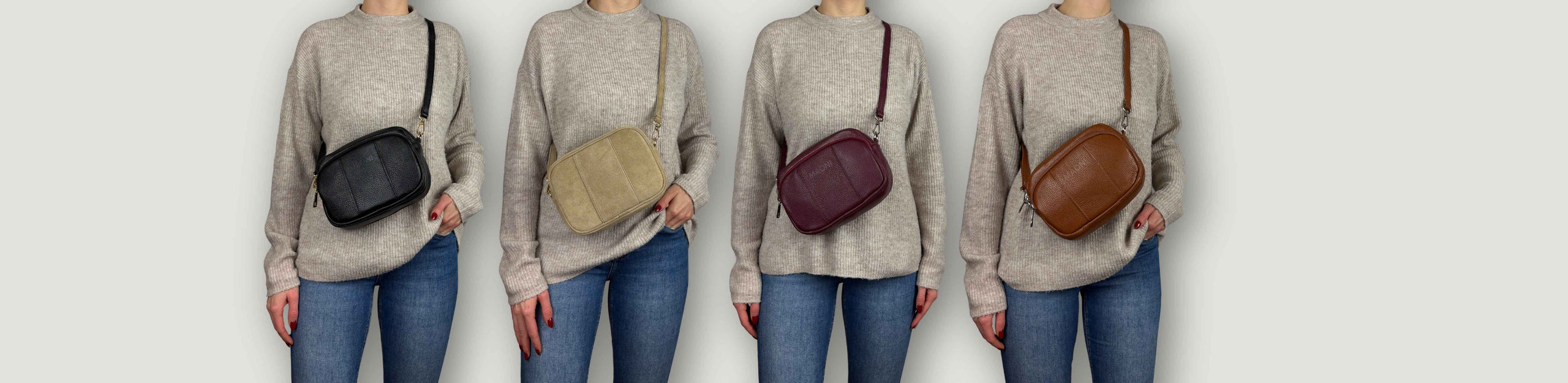 Wise Owl Umhängetasche Aus Echtem Rindsleder - Leichte Slingbag Mit 5 Reißverschlussfächern