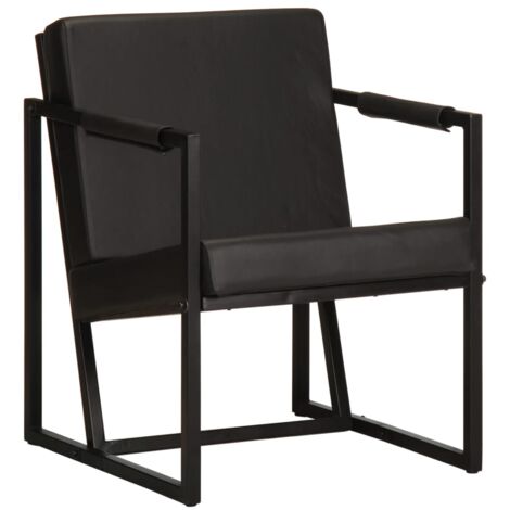 Sessel Helsinki Echtleder Schwarz - Moderner Ledersessel Mit Edelstahlfüßen