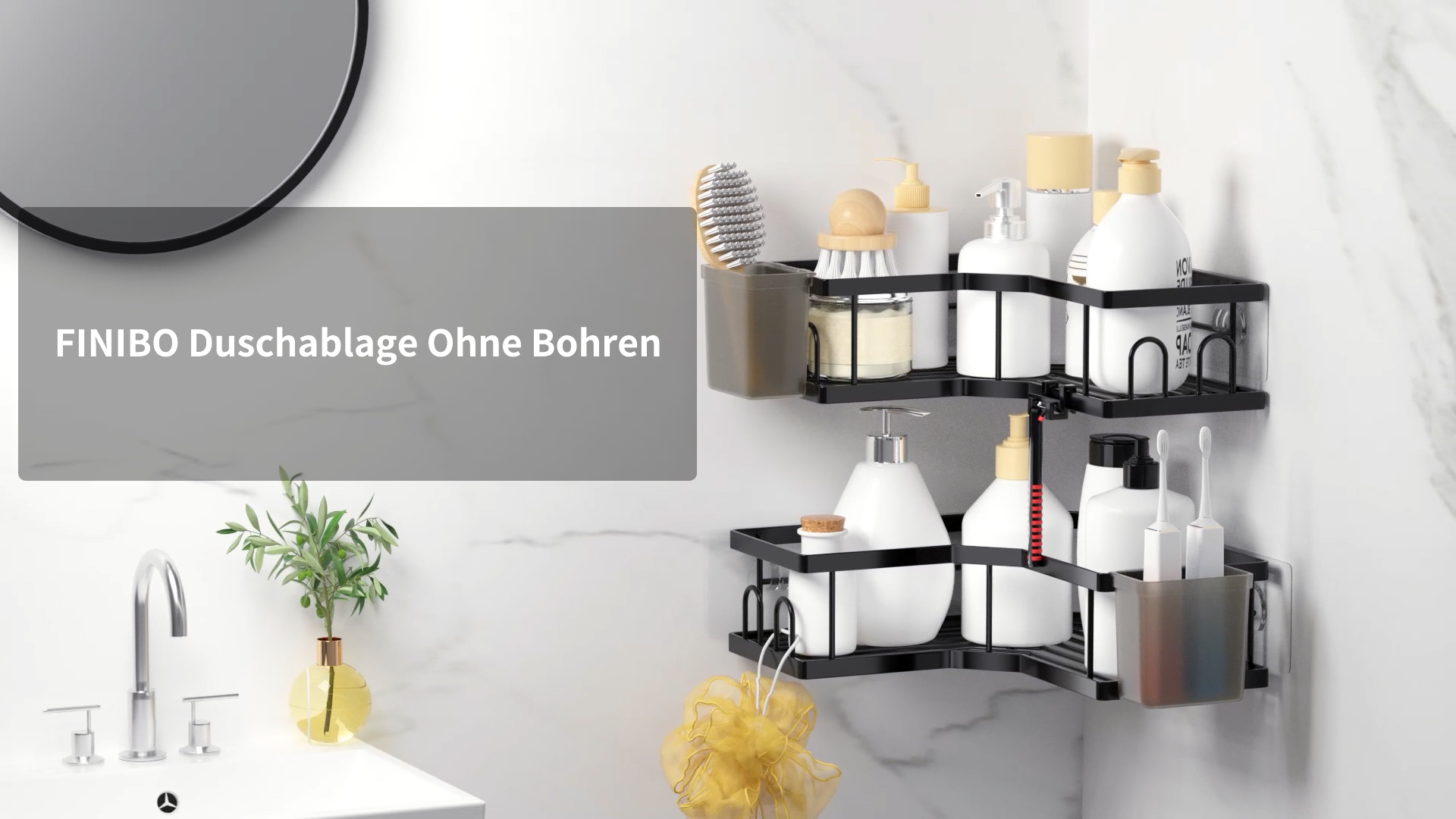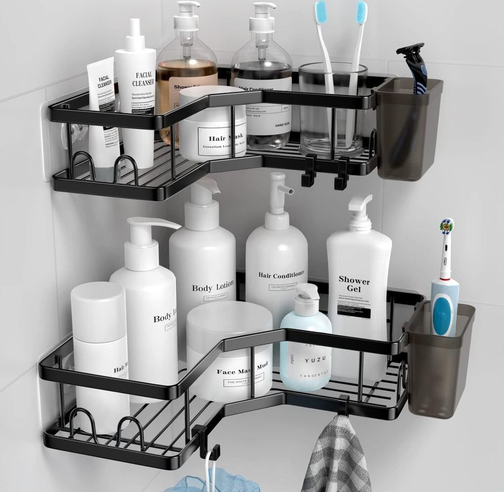 Endlich Ordnung in der Dusche! Diese Ribech Duschablagen kommen als 2er-Set und du musst nicht mal bohren. Einfach die mitgelieferten Klebestreifen nutzen und an die Wand bringen - hält bis zu 15kg! Das coole Feature: Sie sind 360° drehbar. Du drehst sie einfach zu dir rum und greifst bequem nach Shampoo, Duschgel & Co. ohne was umzuwerfen. Perfekt für 90° Ecken (nicht für runde Ecken geeignet!). Einfach Wand reinigen, Schutzfolie abziehen, aufkleben und 72 Stunden warten - dann kann's losgehen. Die Ablagen haben Abflusslöcher, damit Wasser ablaufen kann und deine Sachen trocken bleiben. Und wenn's mal sauber gemacht werden muss: Die Drehteller sind abnehmbar. Super praktisch für Bad, Küche oder Gästetoilette!
