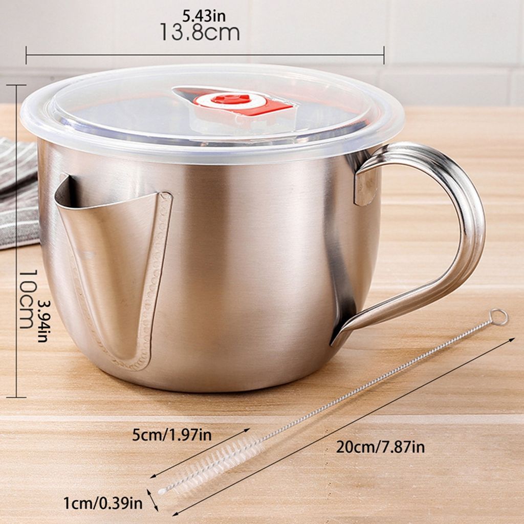 Endlich fettarme Soßen und Suppen! Dieser Fettabscheider aus 304 Edelstahl ist dein neuer bester Freund in der Küche. Mit 1200ml Fassungsvermögen ist er groß genug für die meisten Gerichte. Die physikalische Ölabscheidung funktioniert super einfach - du trennst das Fett ohne Aufwand! Und das Beste: Er ist induktionsgeeignet! Du kannst ihn direkt auf den Herd stellen und erhitzen - mega praktisch! Die Maße von 15x9x9,5cm sind handlich aber dennoch geräumig. Der Griff liegt super in der Hand - nichts verbrennt dir die Finger! Nach Gebrauch einfach abwaschen - spülmaschinengeeignet! Keine Flecken, kein Geruch - alles blitzblank! Ob für deftige Bratensoßen, klare Suppen oder Eintöpfe - mit diesem Teil wird alles viel leichter und gesünder! Ein echter Küchenhelfer der dir Zeit und Nerven spart!