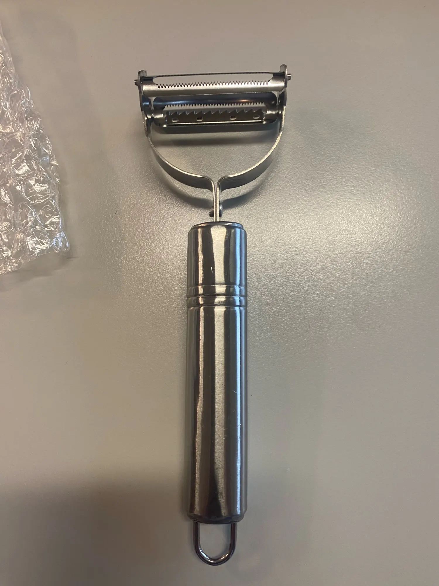 Küchenhelfer der Extraklasse! Dieser Gemüseschäler aus Edelstahl kann beides: normal schälen und Julienne-Stifte schneiden. Rutschfester Griff - auch mit nassen Händen kein Problem. Nur 60g leicht, 18cm lang - passt in jede Schublade. Spülmaschinenfest und mit Aufhängeöse. Ob Kartoffeln, Karotten oder Zucchini - damit wird jedes Gemüse zum Kunstwerk!