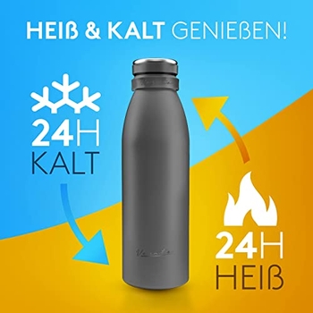 Dein Getränk bleibt stundenlang perfekt temperiert! Diese HoneyHolly Thermosflasche aus Edelstahl hält deine Getränke 24 Stunden eiskalt oder 12 Stunden heiß - egal ob im Sommer am See oder im Winter auf der Skipiste. \\n\\nWas diese Flasche so besonders macht: \\n• Doppelwandige Vakuum-Isolierung \\n• Aus 18/8 Edelstahl - absolut geruchsneutral \\n• BPA-frei und lebensmittelecht \\n• 2 austauschbare Deckel im Lieferumfang \\n\\nDie beiden Deckel-Optionen: \\n• Sport-Verschluss mit Strohhalm - perfekt unterwegs \\n• Griff-Deckel mit Filter - ideal für Tee und Früchte \\n\\nPraktisch für: \\n• Schule, Uni, Büro \\n• Sport, Fitness, Wandern \\n• Reisen, Camping, Picknick \\n• Auto, Fahrrad, Rucksack \\n\\nDie spezielle Pulverbeschichtung macht die Flasche rutschfest und kratzunempfindlich. Und das Beste: Du tust was für die Umwelt, weil du keine Einwegflaschen mehr kaufst. Eine Flasche, die wirklich alles kann - und das auch noch richtig gut!