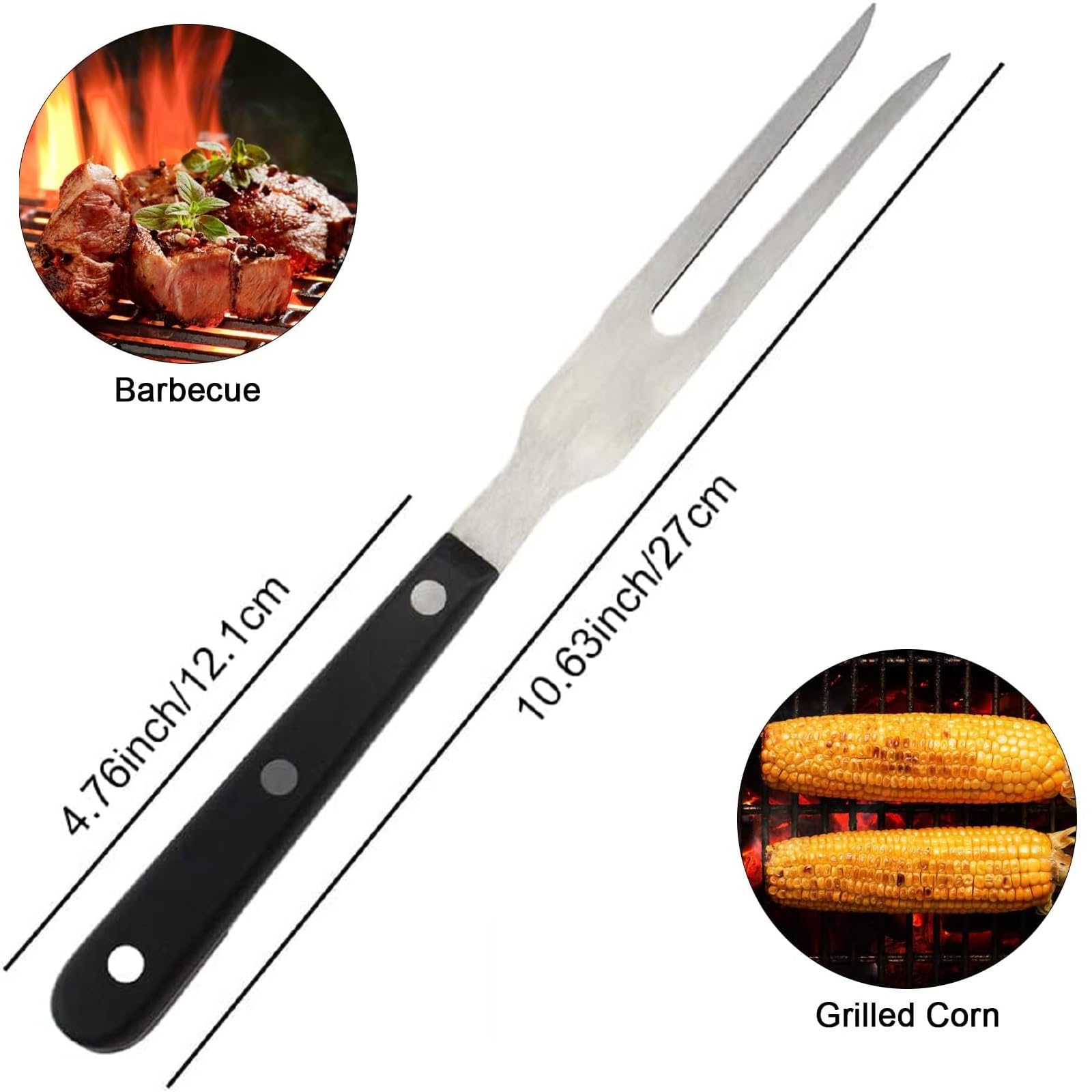 Der perfekte Partner für deine Grillsessions! Diese robuste Fleischgabel macht das Grillen zum Kinderspiel! \\n\\nAus hochwertigem Edelstahl 304 - rostfrei, hitzebeständig und extrem langlebig! Dickes Material, das sich nicht verbiegt! \\n\\nLänge: 27 cm - perfekte Größe zum sicheren Hantieren, auch bei großen Grillstücken! \\n\\nDie beiden scharfen, konischen Zinken durchstechen selbst zähes Fleisch mühelos - sicherer Halt beim Wenden und Servieren! \\n\\nDer ergonomische Holzgriff liegt super in der Hand - auch bei längeren Grill-Einsätzen ermüdungsfrei! \\n\\nBreite: 2,1 cm, Höhe: 1,5 cm - stabil und gut ausbalanciert! \\n\\nVielseitig einsetzbar: \\n- Fleisch wenden auf dem Grill \\n- Braten tranchieren \\n- Gemüse arrangieren \\n- Kartoffeln testen \\n\\nEinfach zu reinigen: Spülmaschinenfest! Einfach reinigen und schon ist sie wieder einsatzbereit! \\n\\nFarbe: Silber - klassisch und hygienisch sauber! \\n\\nLieferumfang: 1x Fleischgabel \\n\\nFür Grillmeister und Hobbyköche - hol dir das Werkzeug, das beim Grillen einfach unverzichtbar ist!