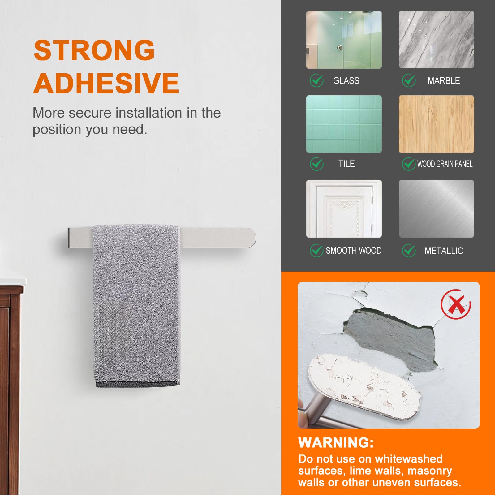 Husman Handtuchhalter Ohne Bohren - Edelstahl 37cm Klebehalterung Für Bad
