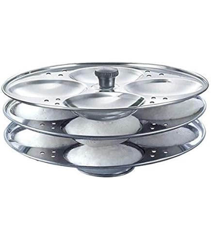 Jetzt gelingen dir perfekte Idlis wie beim indischen Profi! Dieser hochwertige Idli-Ständer aus Edelstahl von KSJONE macht's möglich. Mit 4 stapelbaren Tellern kannst du auf einmal 16 fluffige Idlis zubereiten - ideal für die ganze Familie oder Gäste. Jeder Teller hat 4 Vertiefungen mit 7,6cm Durchmesser, perfekt für die typische Idli-Form. Das geniale Detail: Die integrierte Dampfpfeife signalisiert dir, wenn der Dampf im Topf optimal ist. Einfach ein paar Zentimeter Wasser in den Topf geben, die mit Teig gefüllten Teller stapeln und etwa 12-15 Minuten dämpfen. Der Mini-Loch-Mechanismus sorgt dafür, dass der Teig die richtige Konsistenz hat für besonders weiche Idlis. Du kannst den Ständer in jedem Schnellkochtopf, Kadhai oder normalen Topf verwenden. Die Mittelstange hält alle Teller sicher zusammen. Perfekt für die indische Küche zu Hause - damit werden deine Idlis garantiert ein Erfolg!