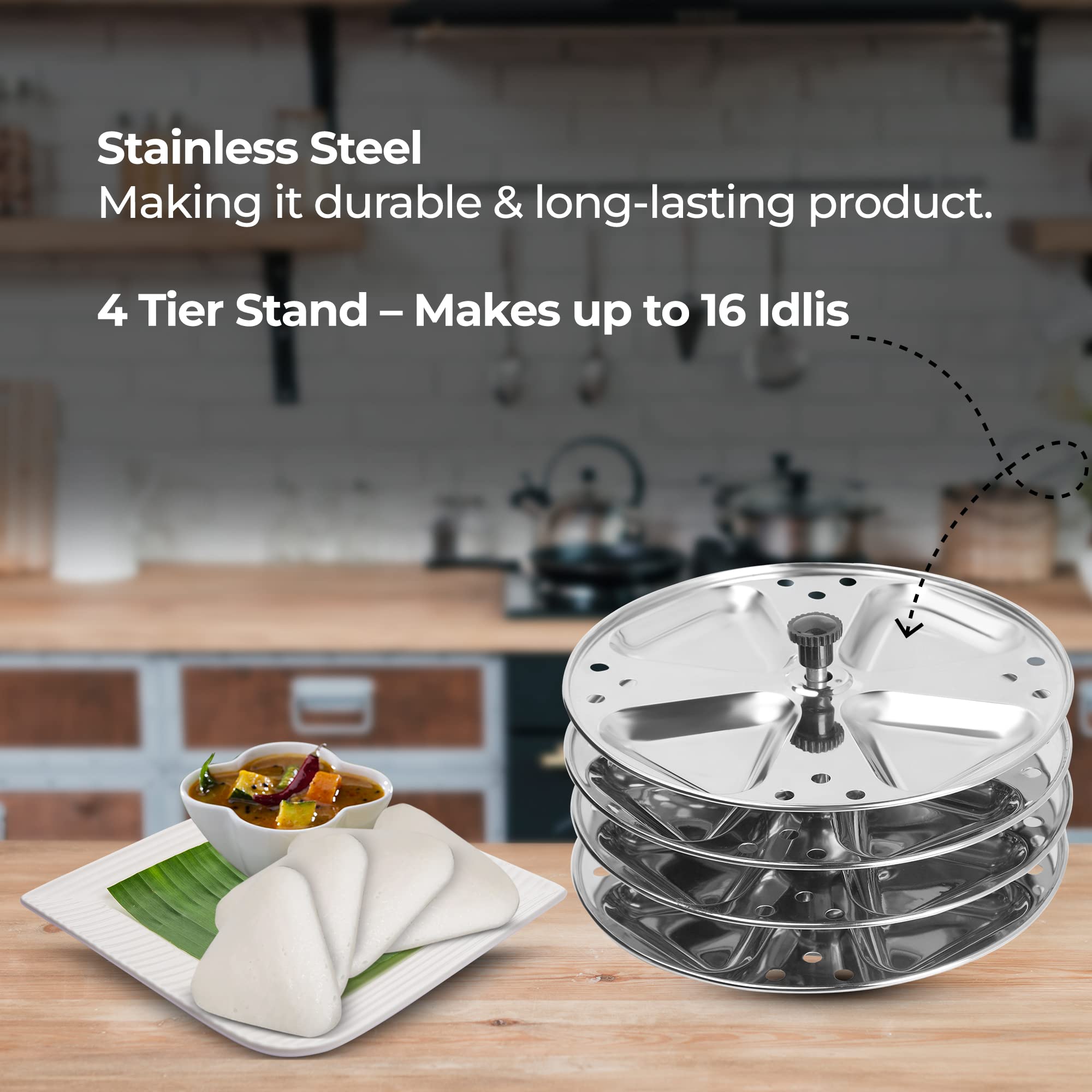KSJONE Idli-Ständer Edelstahl - 4 Teller Für 16 Idlis, Inklusive Dampfpfeife