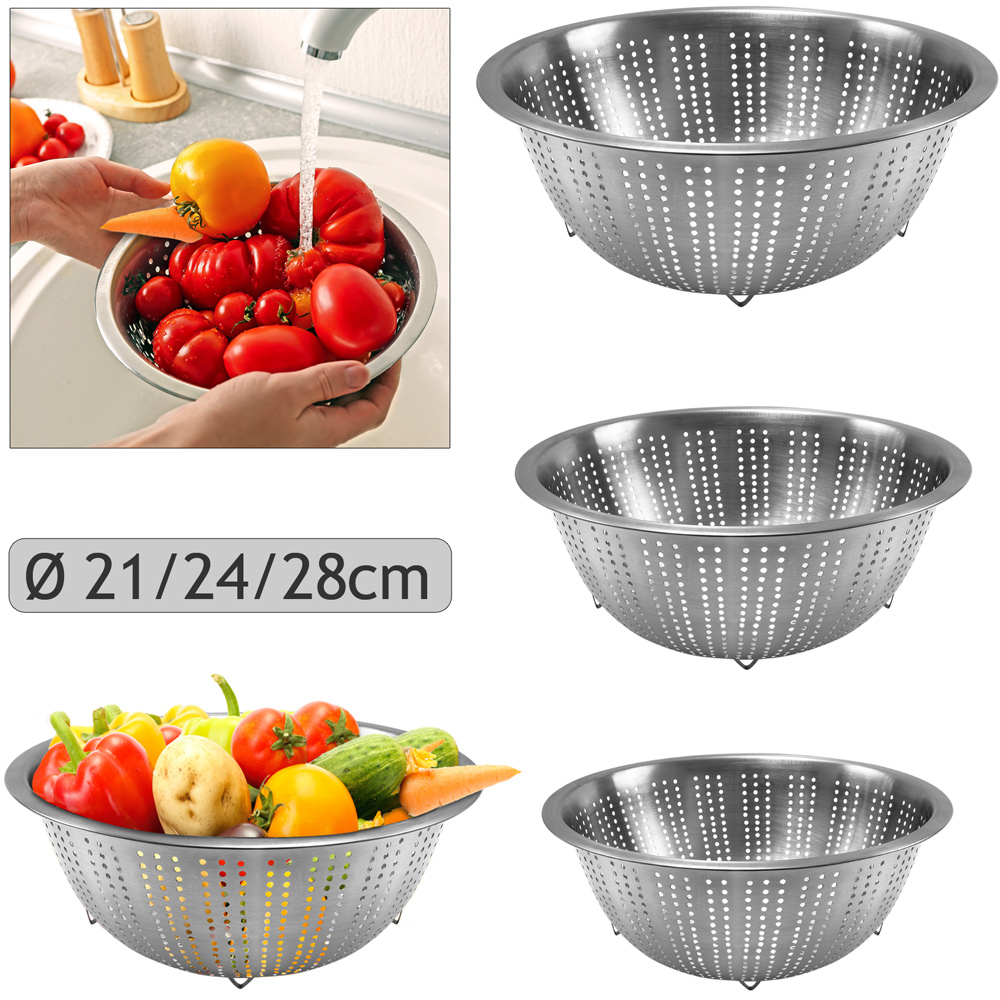 Küchen-Allrounder aus Edelstahl! Dieses 19cm Sieb von BergHoff meistert alle Aufgaben: Nudeln abgießen, Gemüse waschen oder Beeren säubern. Die feinen Maschen halten selbst kleine Körner zurück. Die stabilen, kreuzgeschweißten Füße geben sicheren Stand. Die gummierten Griffe liegen gut in der Hand und bleiben kühl. Spülmaschinenfest für einfache Reinigung. Aus hochwertigem 18/10 Edelstahl - rostfrei und hygienisch. Ein echter Küchenhelfer, der täglich gute Dienste leistet!