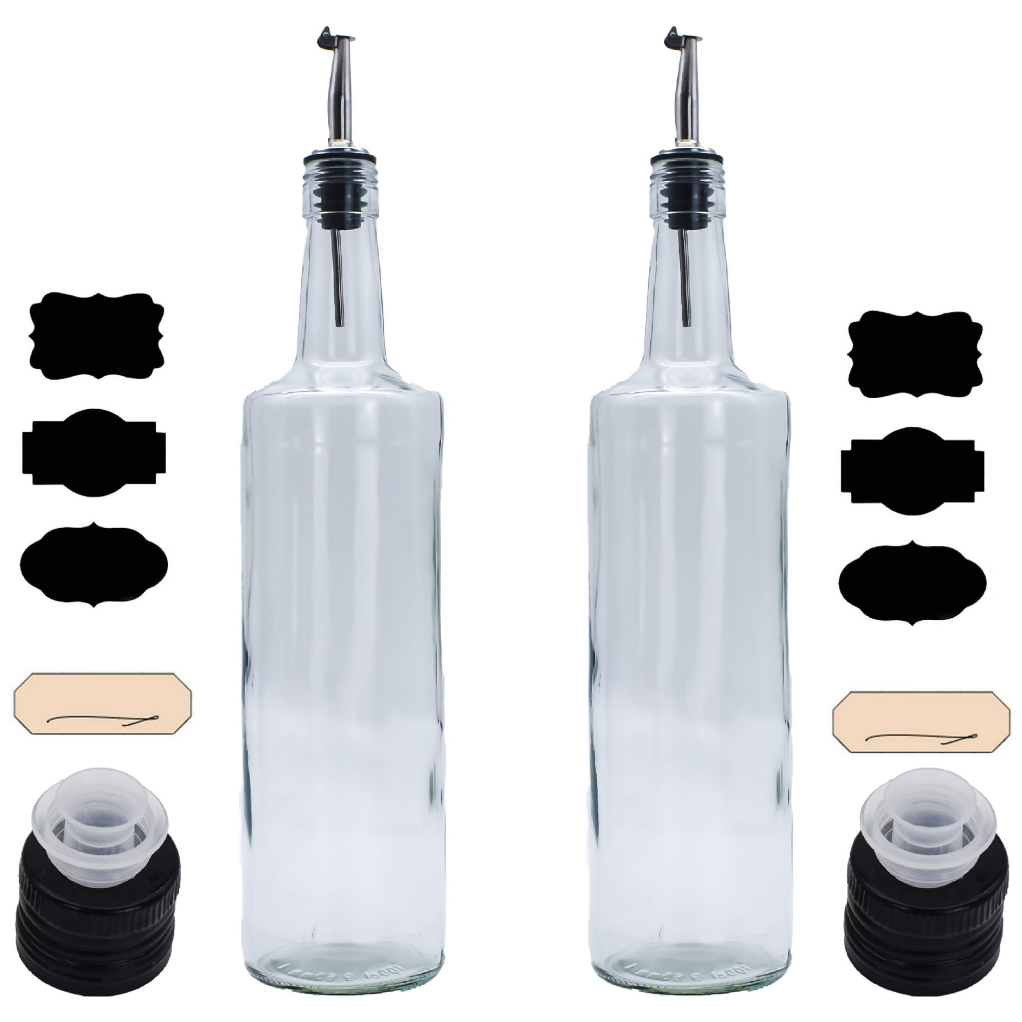 4x Ölflaschen Glas 700ml Mit Edelstahl-Ausgießer - Inklusive Etiketten & Deckel
