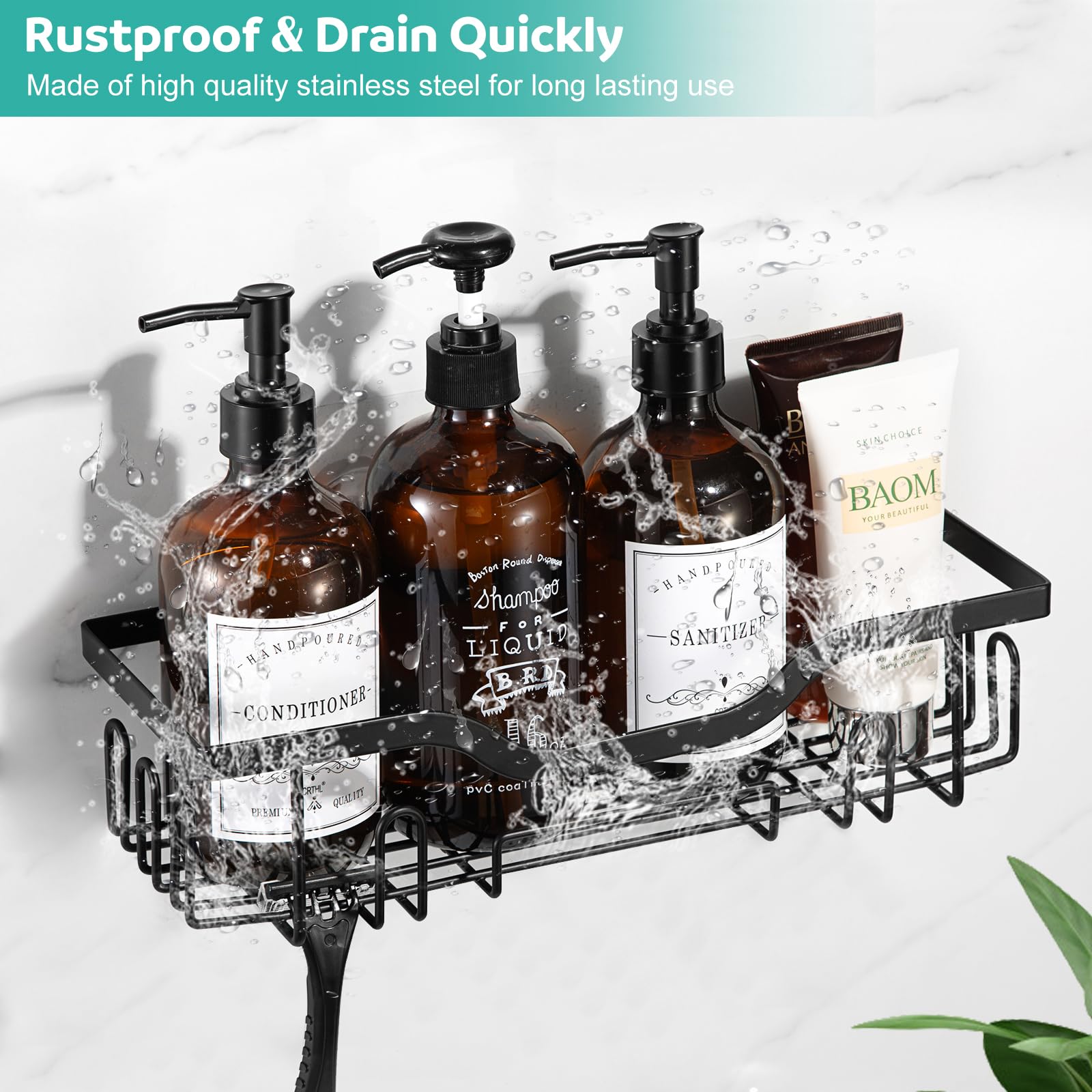 Endlich Ordnung in der Dusche! Dieses coole Duschregal von Kempt kommt komplett ohne Bohren aus - einfach mit dem starken Klebesystem anbringen und fertig! Aus rostfreiem Edelstahl in schickem Schwarz, hält es bis zu 5 kg Gewicht problemlos aus. Mit praktischen Haken für Waschlappen, Loofahs oder Rasierer und geräumigen Ablagen für Shampoo, Duschgel und andere Badutensilien. Das elegante Drahtdesign sieht nicht nur gut aus, sondern trocknet auch schnell und sammelt keinen Kalk. Perfekt für Mietwohnungen oder wenn man keine Löcher in die Fliesen machen will. In Großbritannien designed, kombiniert es Funktionalität mit stylischem Look. Einfach die Schutzfolie vom Klebepad entfernen, fest andrücken und 24 Stunden trocknen lassen - schon hast du eine stabile Ablage, die nicht mehr weggeht. Einfach die Lösung für jedes unordentliche Badezimmer!