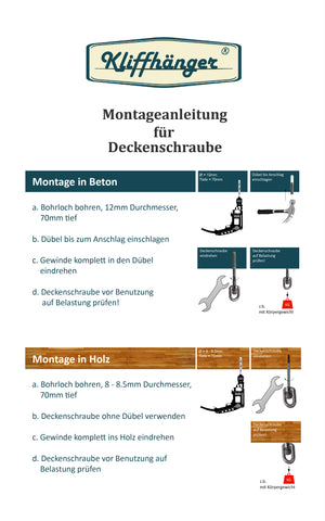 KLIFFHÄNGER Deckenhaken Edelstahl - Bis 180kg Für Hängesessel & Yogatücher