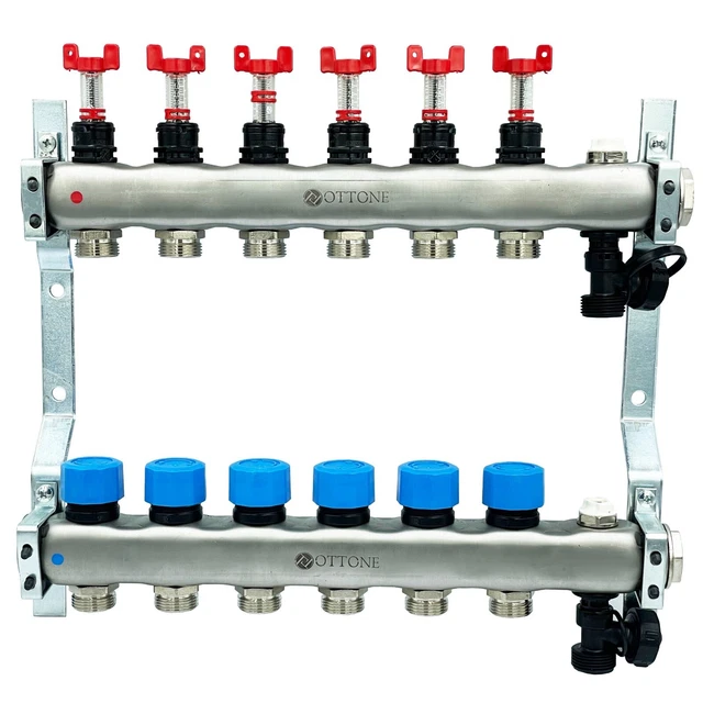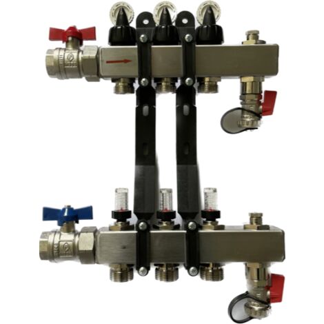 Edelstahl Fußbodenheizungsverteiler 10-fach - 3/4" Eurokonus Mit Durchflussmesser