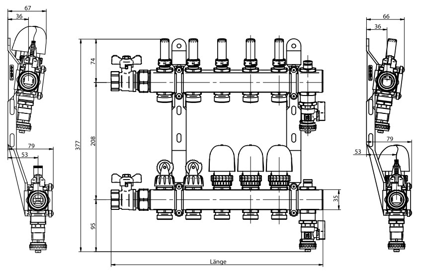Professionelle Wärmeverteilung für deine Fußbodenheizung! Dieser 10-fach Verteiler aus Edelstahl ist perfekt für mittlere bis große Heizungsanlagen. Mit praktischen Durchflussmessern (0-5 Liter pro Kreis) kannst du jeden Heizkreis individuell einstellen. Die 3/4\ Eurokonus-Anschlüsse sind Standard für Klemmringverschraubungen. Besonders flexibel: Ein- und Ablauf sind sowohl links als auch rechts möglich, Vorlauf und Rücklauf können getauscht werden. Die voreinstellbaren Markenventile (M30x1,5mm) sind Heimeier-kompatibel. Mit 590mm Gesamtlänge und 200mm Abstand zwischen Vor- und Rücklauf passt er auch in flache Verteilerschränke. Made in Germany Qualität!