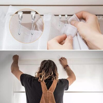 Perfekte Lösung für alle Aufhänge-Probleme! Dieses Set mit 100 Edelstahl-Haken ist super vielseitig einsetzbar. Ob für Gardinenschienen, Duschvorhänge, Autositzbezüge oder Deckenmontage - diese kleinen Helfer halten sicher und zuverlässig. Aus rostfreiem Stahl gefertigt, sind sie verschleißfest und langlebig. Die glatte, polierte Oberfläche schont deine Textilien vor Kratzern. Einfache Installation ganz ohne Werkzeug - einfach andrücken und fertig! Mit 2,2cm Länge kompakt aber stabil. Perfekt für Heimwerker, Haushalt und kreative Projekte. Mit 100 Stück hast du immer genug Vorrat für alle Aufhänge-Arbeiten!