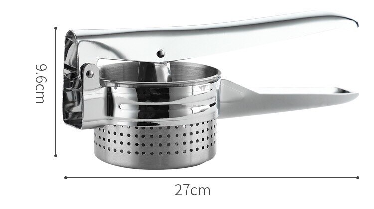 Schluss mit klumpigem Kartoffelpüree! Diese Kartoffelpresse aus Edelstahl mit Holzgriff macht dein Püree super cremig und gleichmäßig. Die gleichmäßig verteilten Maschenlöcher sorgen für eine perfekte Textur - kein Vergleich zu diesen alten Stampfern! Aber das ist noch nicht alles: Du kannst damit auch Kürbis, Karotten, Bananen und vieles mehr zerkleinern. Mit 34cm Länge liegt sie gut in der Hand und der Holzgriff gibt sicheren Halt. Aus hochwertigem Edelstahl gefertigt ist sie rostfrei, rissfest und super langlebig. Spülmaschinengeeignet - einfach rein und fertig! Das Aufhängeloch ist praktisch für platzsparende Lagerung. Ob für den Haushalt oder die Profiküche - diese Presse spart Zeit und Nerven. Dein Kartoffelpüree wird ab sofort so cremig wie aus dem Restaurant, aber ohne den ganzen Aufwand. Ein Küchenhelfer der sich wirklich lohnt und deine Kochkünste auf das nächste Level bringt!