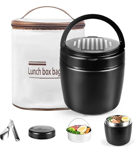 Mega praktisch für alle, die ihr Essen immer frisch und lecker mitnehmen wollen! Diese Edelstahl-Lunchbox von BELLE VOUS hält dein Essen bis zu 6 Stunden warm oder 8 Stunden kalt - dank der doppelwandigen Vakuumisolierung. Mit 700ml Fassungsvermögen ist sie perfekt für komplette Mahlzeiten wie Pasta, Suppen oder Salate. Aus lebensmittelechtem Edelstahl, komplett BPA-frei und geruchsneutral. Der Schraubdeckel mit Dichtungsring macht sie absolut auslaufsicher - super für die Tasche oder den Rucksack! Im Set dabei: zusammenklappbarer Löffel, Tragetasche und der praktische Deckel mit Griff. Die zwei Ebenen sind perfekt, um verschiedene Speisen getrennt zu transportieren. Ob für die Arbeit, Schule, Wandern oder Sport - mit dieser Box hast du immer dein Lieblingsessen dabei! Reinigung ist auch kein Problem dank der großen Öffnung.