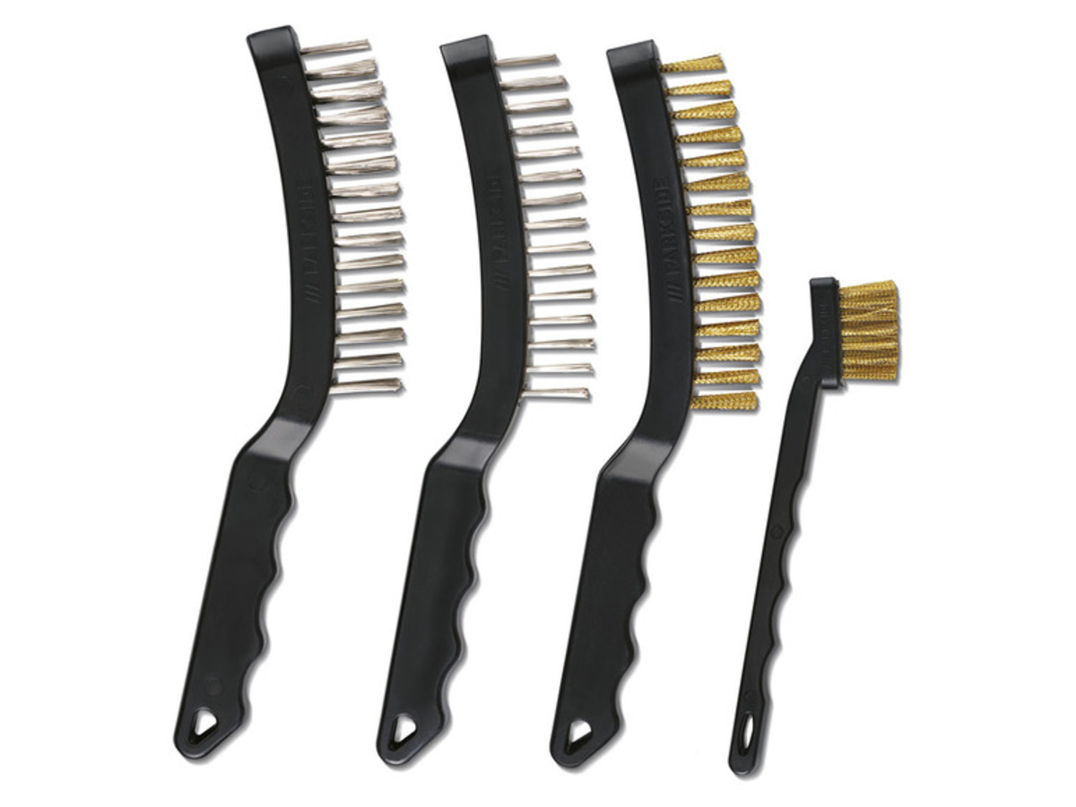 Alles für die gründliche Reinigung! Dieses 8-teilige Drahtbürsten-Set enthält Bürsten aus Edelstahl, Messing und Nylon für verschiedene Einsatzzwecke. Mit doppelseitigem Design: drei Reihen Borsten auf einer Seite für große Flächen, eine Reihe für Ecken und Kanten. Inklusive 4 praktischen Haken für die Bohrmaschine. Ergonomische Griffe für komfortables Arbeiten. Ideal zum Entrosten, Entlacken, Reinigen von Werkzeugen oder Haushaltsgegenständen. Ein vielseitiges Set für Handwerker und Heimwerker!