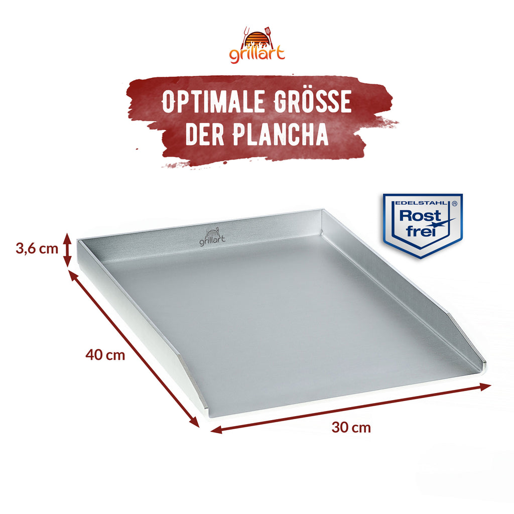 Plancha Grillplatte 30x40cm - Edelstahl Mit 2 Spachteln & 5 Spießen