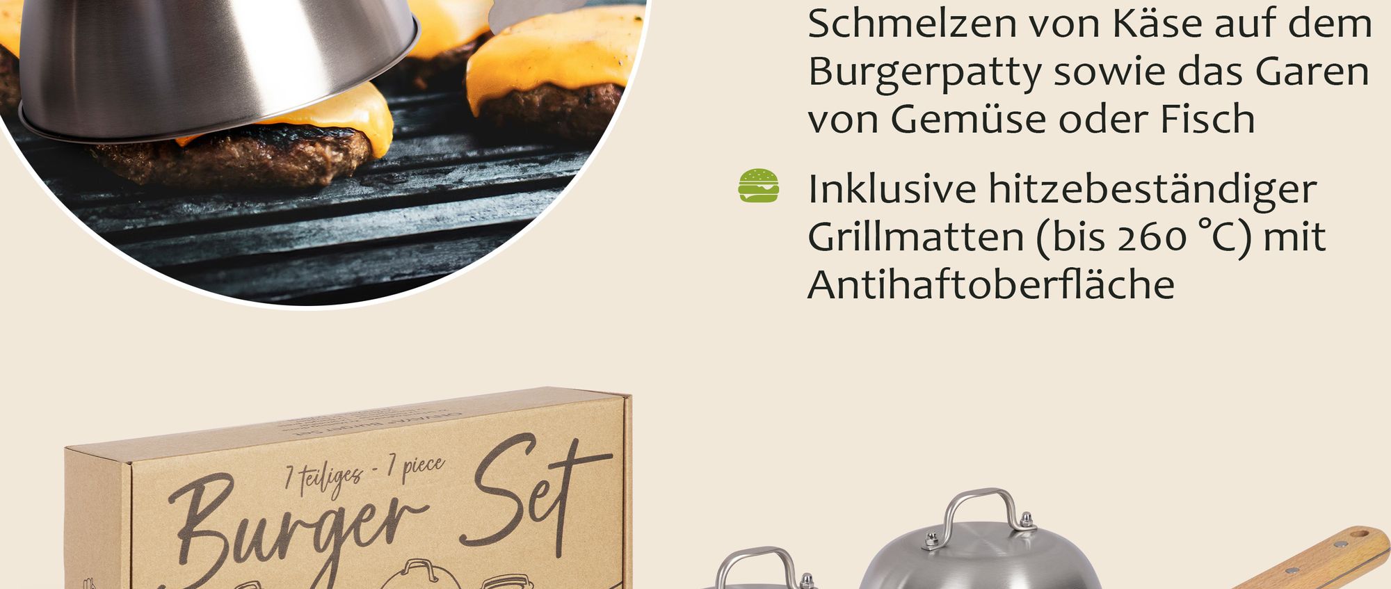 Burger Smasher Set 5-tlg. - Edelstahl Mit Burgerglocke, Presse, Wender & Spachtel