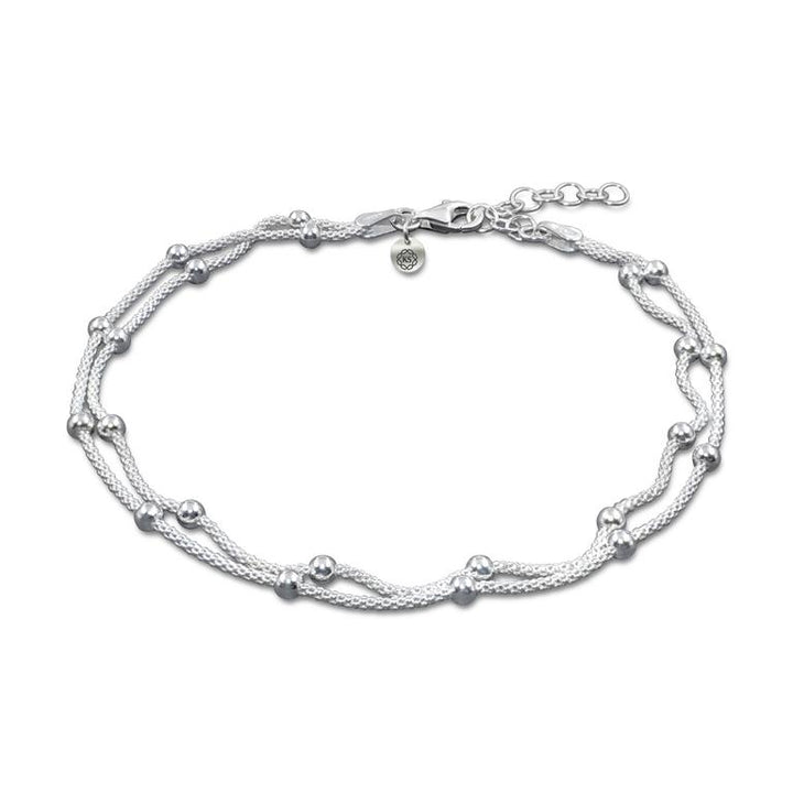 NOELANI Fußkette Edelstahl - Mit Glasperle & Steel Beads, 22+5cm Blau