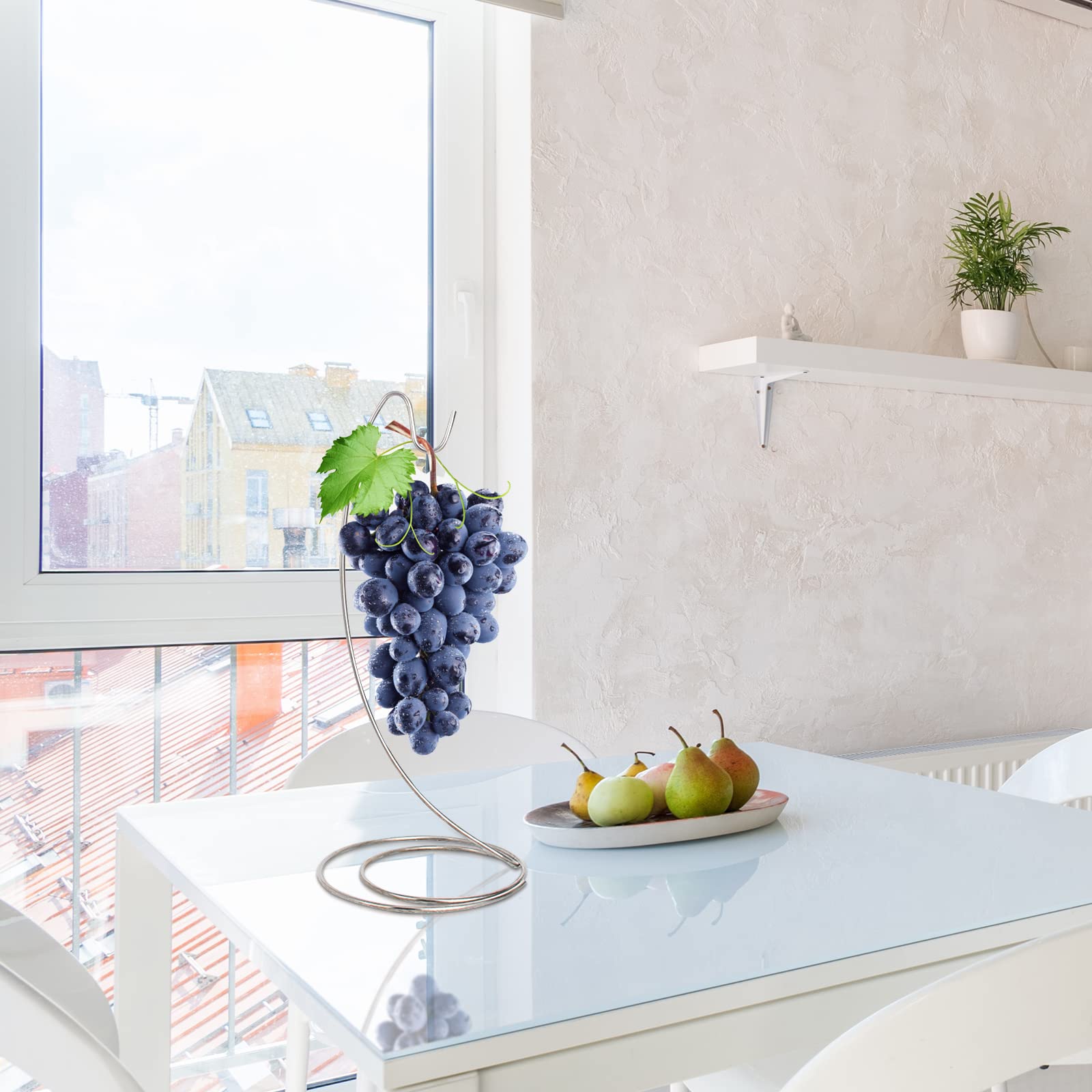 Dieser Bananenhalter ist ein echter Küchen-Held! Aus rostfreiem Edelstahl - stabil und langlebig. 32cm hoch mit 14,5cm Basis - steht sicher auf jeder Arbeitsplatte. Mit mehreren Haken - für Bananen, Trauben oder anderes Obst. Verhindert Druckstellen - Obst bleibt länger frisch. Spart Platz - Obst hängt platzsparend in der Luft. Modernes Design - sieht in jeder Küche gut aus. Auch für Kopfhörer oder Küchenutensilien geeignet. Einfach aufstellen und Obst aufhängen - Organisation war noch nie so einfach!