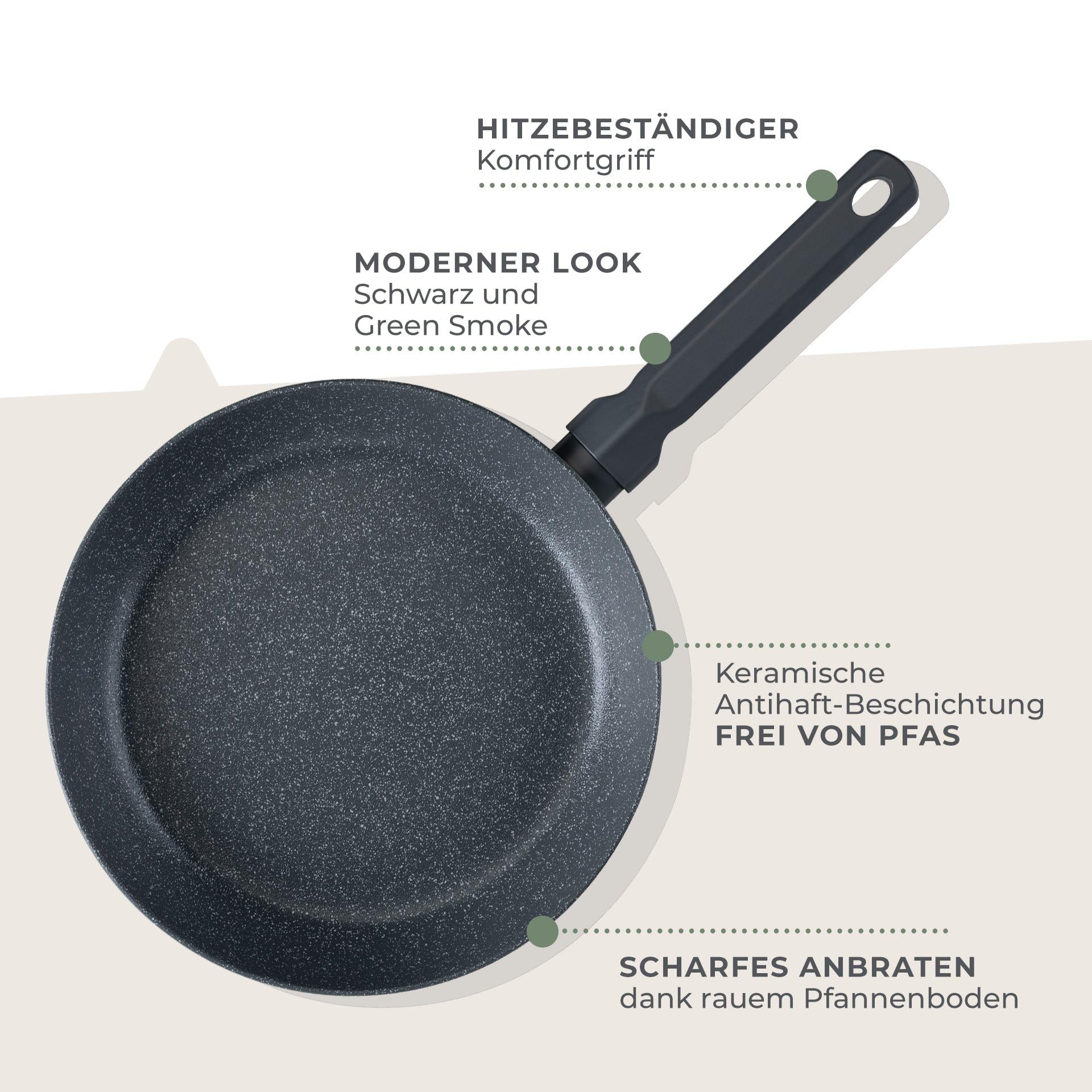 Koche wie ein Profi mit dieser hochwertigen Edelstahlpfanne von Fackelmann! Die 24cm Pfanne aus 18/8 Edelstahl ist perfekt für 2-3 Personen und für alle Herdarten geeignet - auch Induktion. Der mitgelieferte Glasdeckel ermöglicht dir, deine Gerichte im Blick zu behalten, während die Aromen erhalten bleiben. PFAS-frei und mit Aluminiumkern für gleichmäßige Hitzeverteilung. Spülmaschinenfest und backofentauglich bis 200°C. Der Bakelit-Griff liegt gut in der Hand und bleibt kühl. Vor dem ersten Gebrauch einfach einbrennen, dann steht perfektem Kochen nichts mehr im Weg. Ob Braten, Schmoren oder Dünsten - mit dieser Pfanne gelingen alle Gerichte. Inklusive 3 Jahren Garantie für sorgenfreies Kochen!