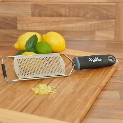 Endlich eine Reibe die nicht nur gut aussieht, sondern auch deine Finger schützt! Aus hochwertigem Edelstahl mit superscharfen Klingen - rostfrei und langlebig. Reibt mühelos Hartkäse, Zitronenschale, Knoblauch, Schokolade und mehr. Inklusive 5 Fingerschutzkappen - kein Verletzungsrisiko mehr! Ergonomischer Griff liegt perfekt in der Hand, mit Aufhängeöse für platzsparende Aufbewahrung. Die mitgelieferte Reinigungsbürste macht die Säuberung zum Kinderspiel - spülmaschinengeeignet. 32,5cm lang - die ideale Größe für jede Küche. Ob für italienische Gerichte, Desserts oder Getränke - diese Reibe ist dein neuer bester Freund in der Küche. Mach das Reiben zur sicheren und sauberen Angelegenheit!