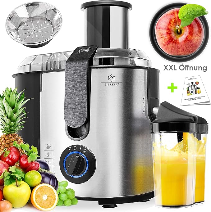 Frisch gepresste Säfte ganz einfach! Dieser manuelle Entsafter aus Edelstahl 304 presst Obst und Gemüse ohne Strom. Mit 9cm Einfülltrichter, 32cm Höhe und praktischer Tischklemme. Inklusive Saftbecher, Reinigungsbürste und allem Zubehör. Leicht zu reinigen, spülmaschinenfest. Perfekt für Äpfel, Orangen, Weizengras oder Karotten. Hol dir den natürlichen Geschmack und alle Vitamine - ohne komplizierte Technik!
